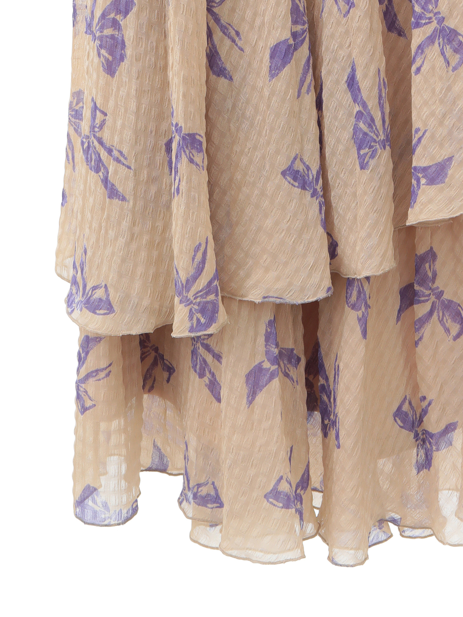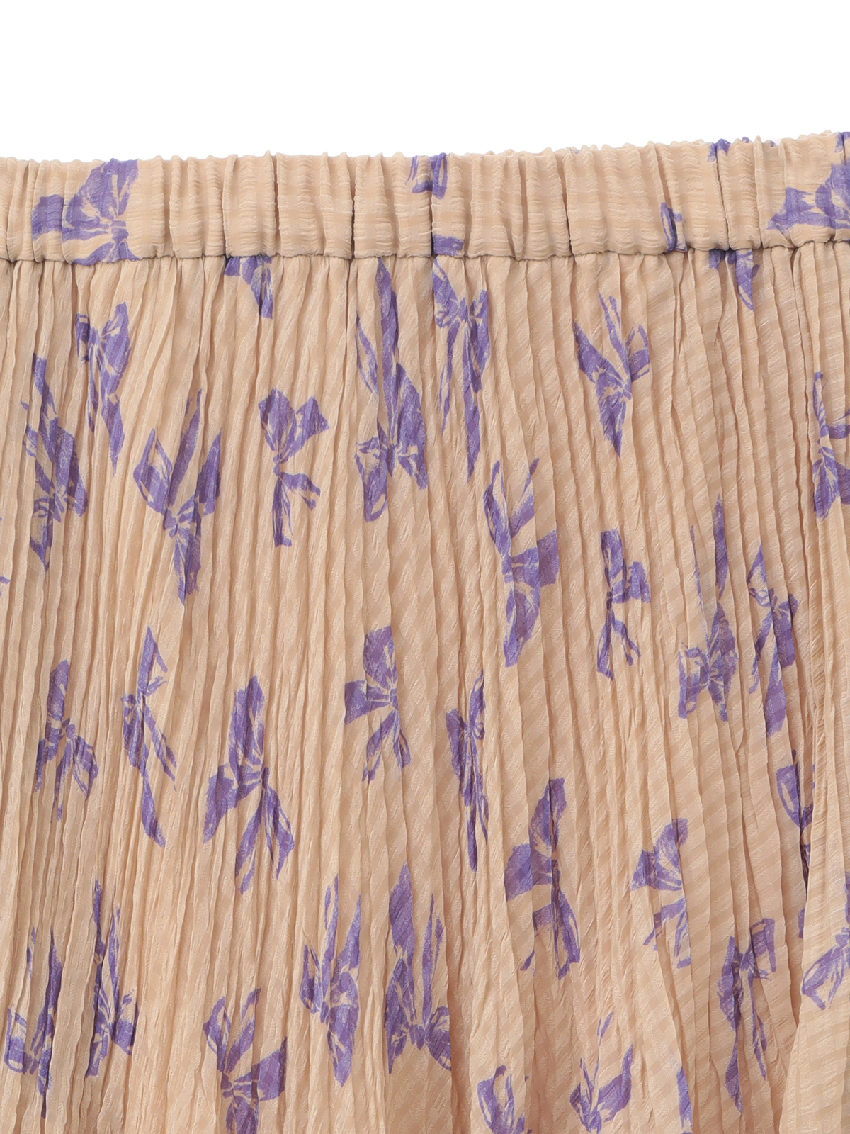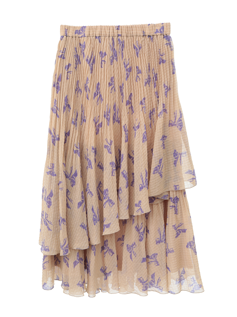手書き風のリボンをモチーフにした、温かみのあるシンプルなプリントが印象的なロングスカート。