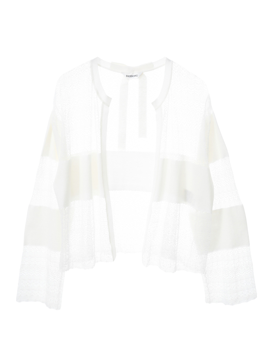 デザインには、繊細な透かし編みと天竺編みのボーダーパターン。