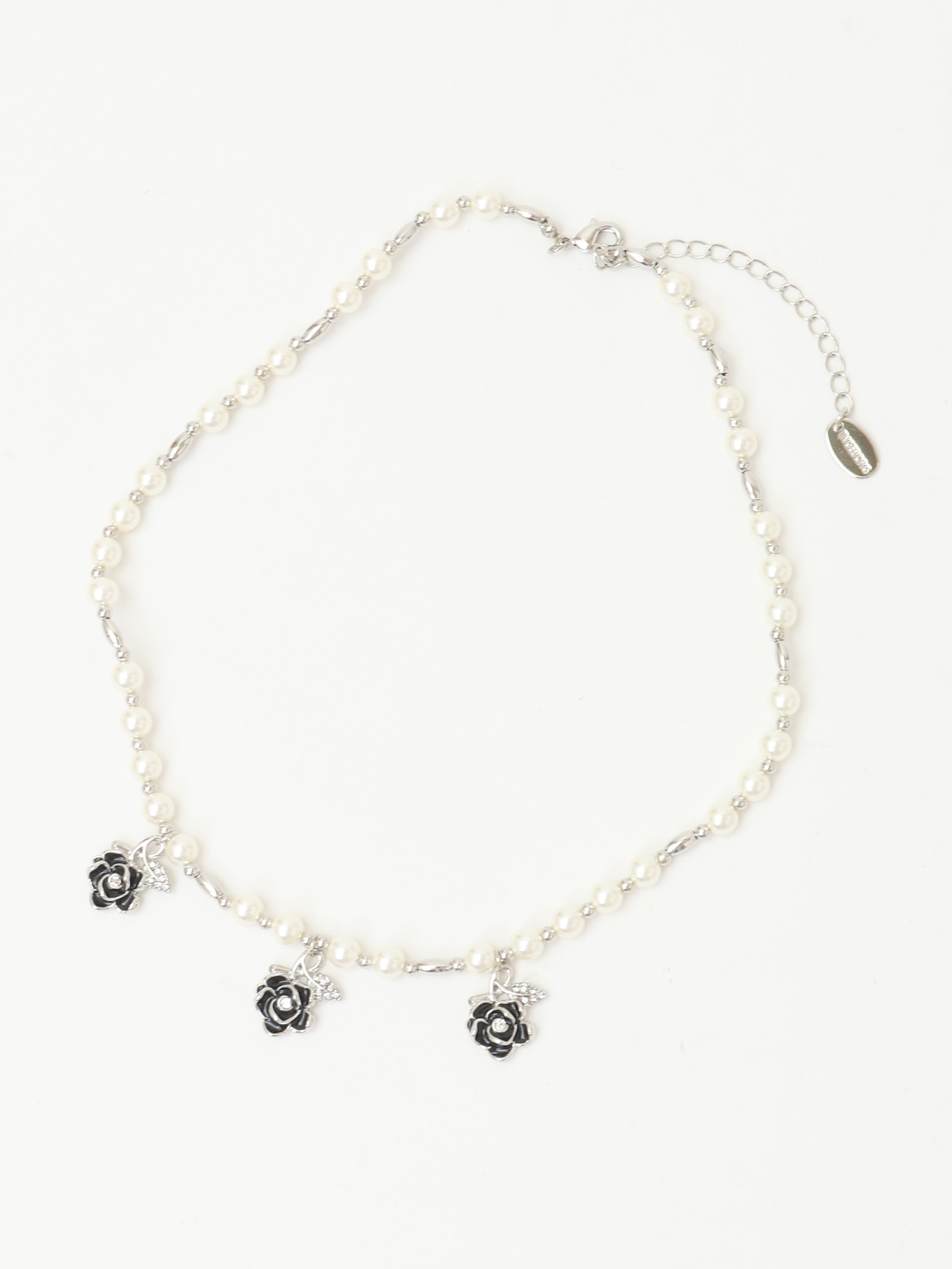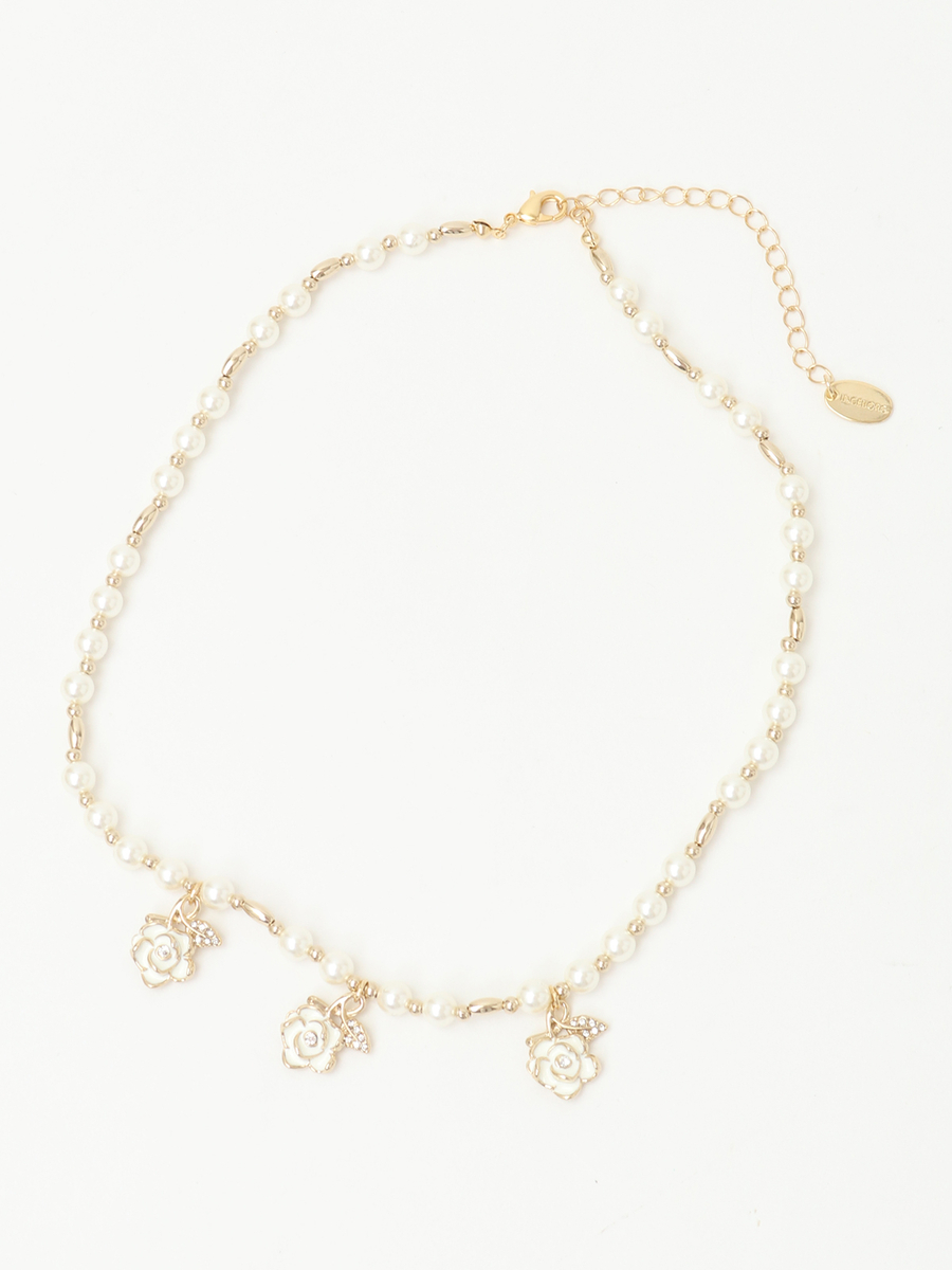 繊細なくちなしの花モチーフを3か所にあしらったショートネックレス。
