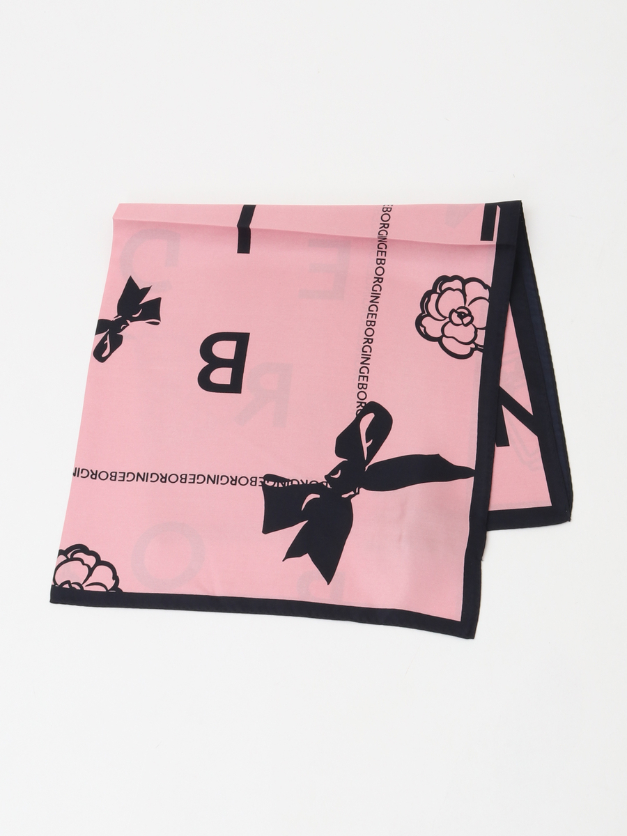 ブランドロゴのアルファベット、リボン、カメリアをランダムに配したユニークなランダムロゴプリントが特徴です。