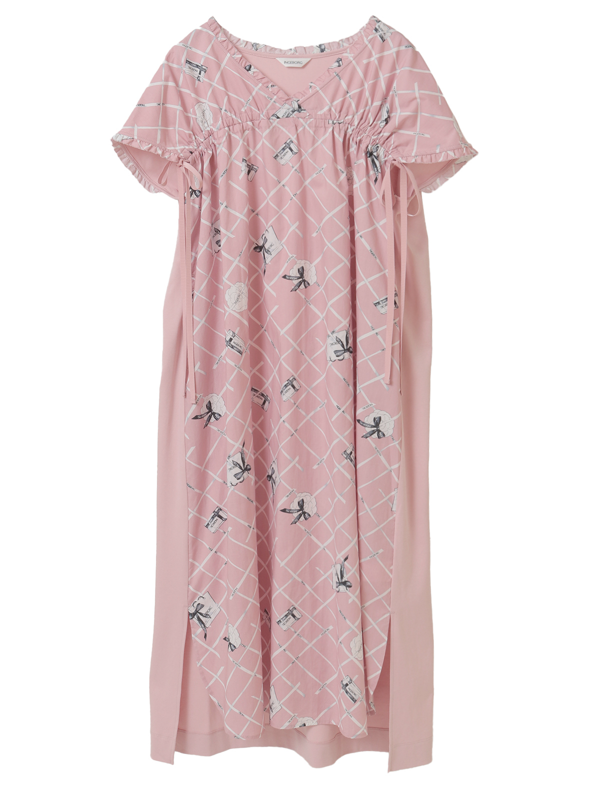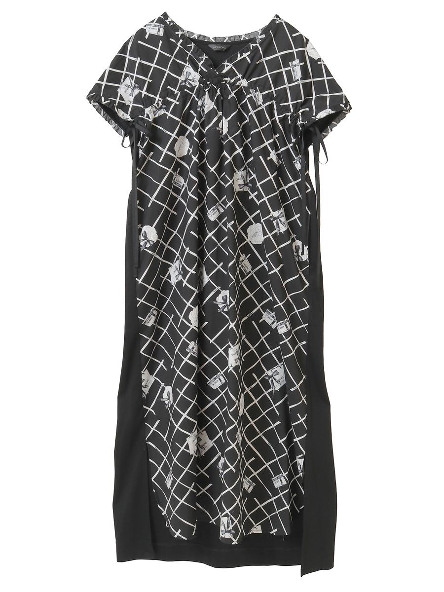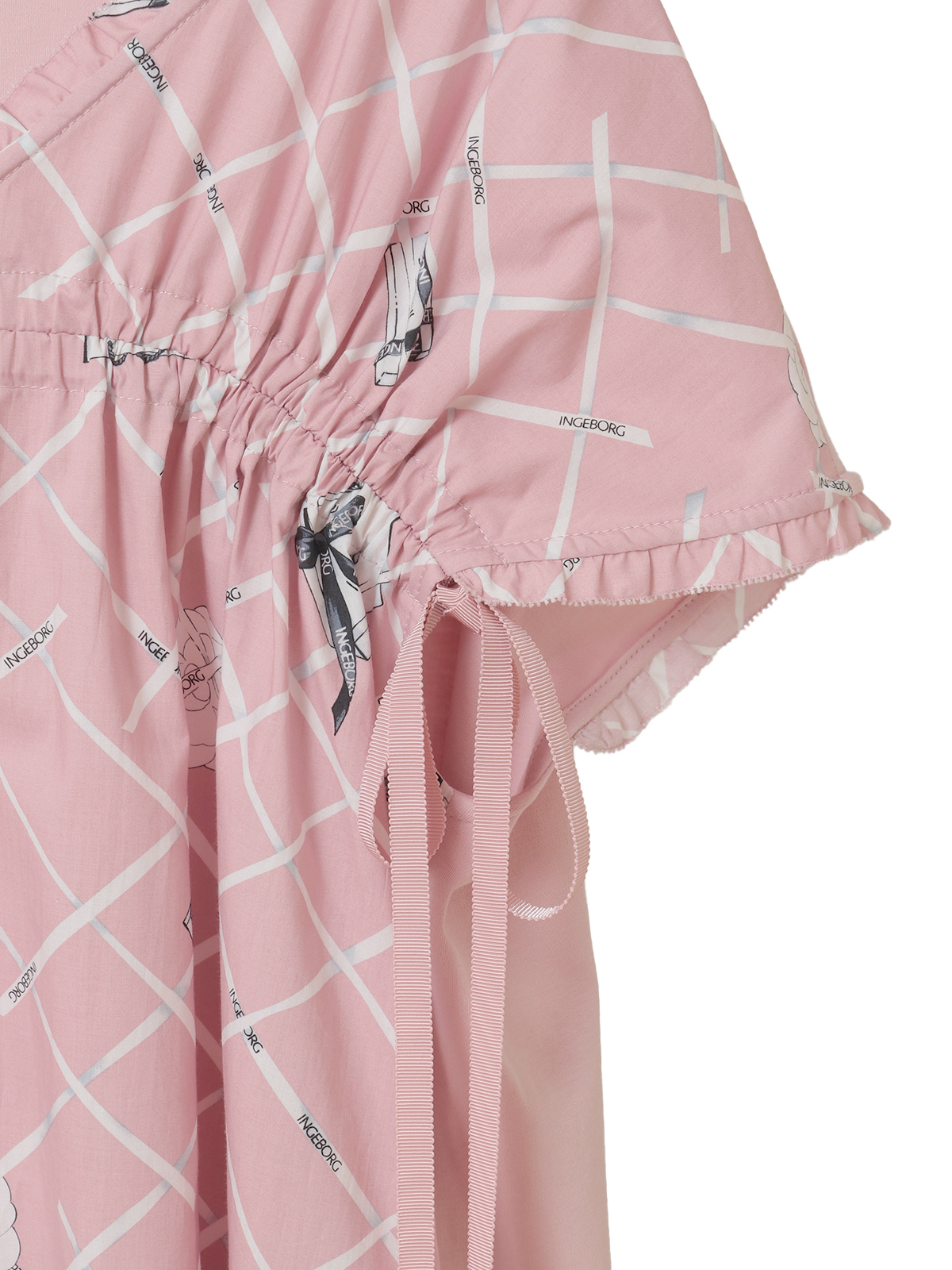 フロントには、張りのあるタイプライター生地にインゲボルグのロゴ入りリボンをチェック状に配した個性的なプリントを使用。