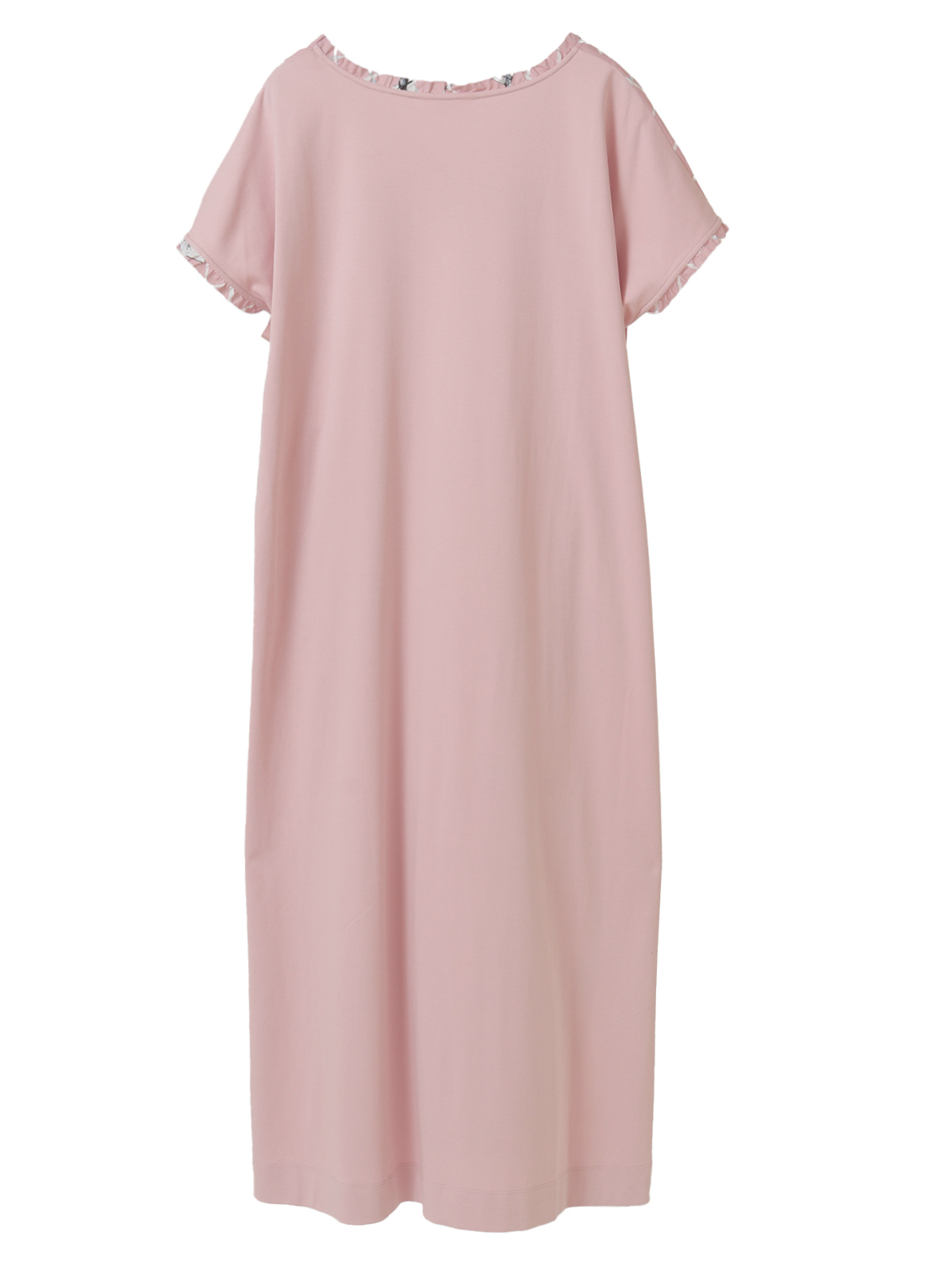 ネックラインはすっきりとしたVネックに、繊細なピコフリルをあしらい、さりげないフェミニンさをプラス。