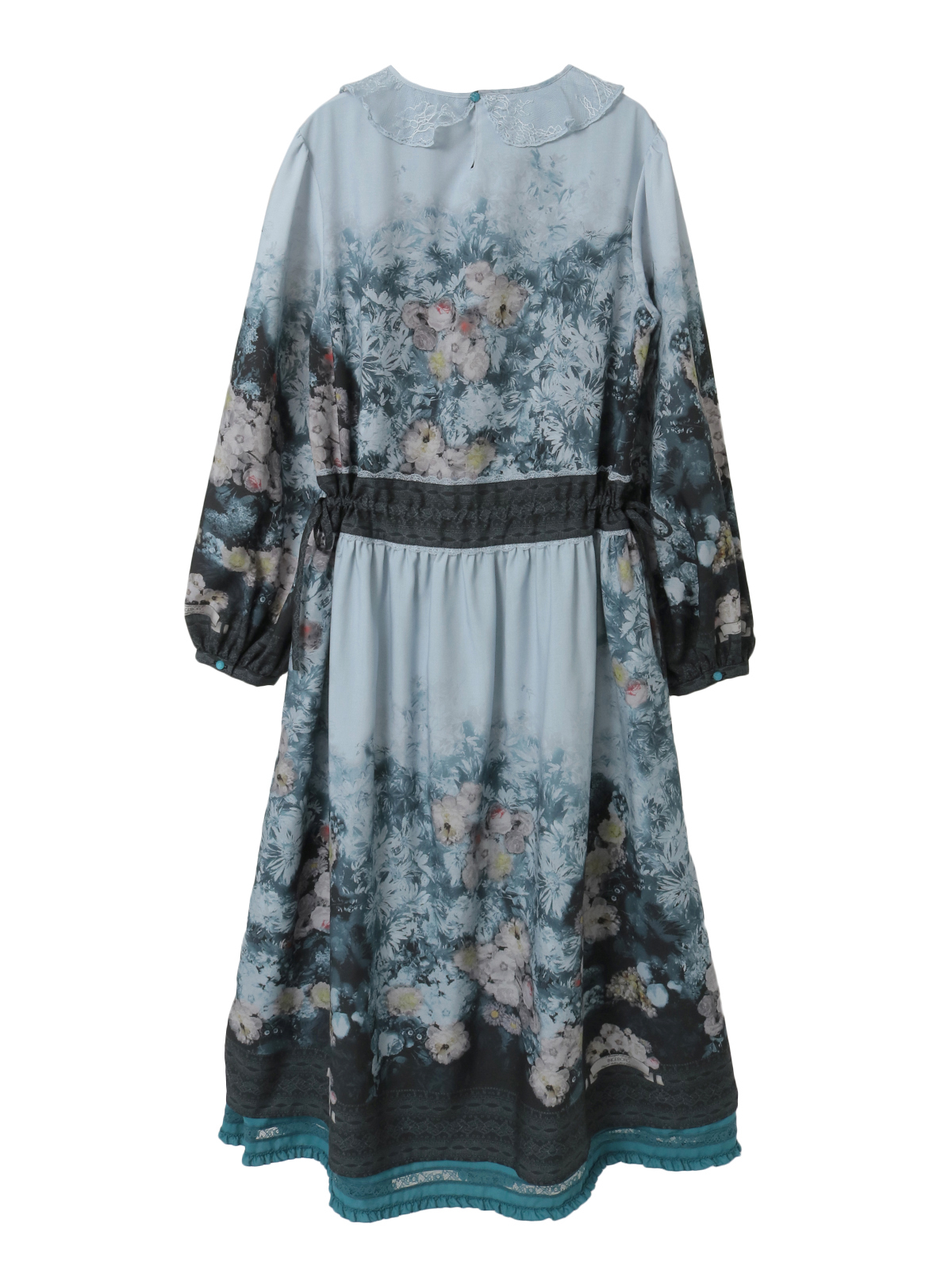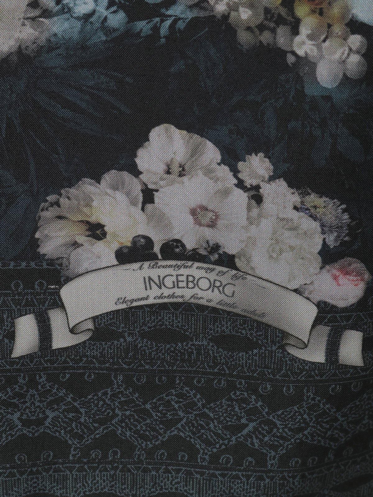 まるで幻想的な絵画を纏うような『インゲボルグの庭』プリントが、美しい存在感を放ちます。