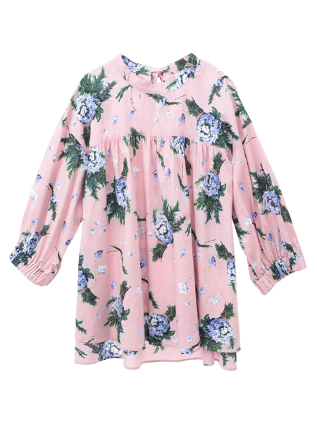 祝祭感あふれる「ローズマリーとアジサイ」プリントブラウス