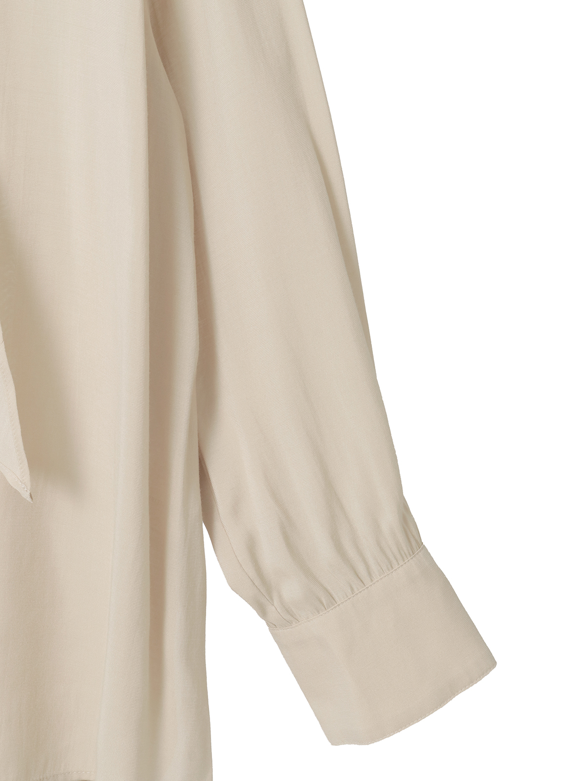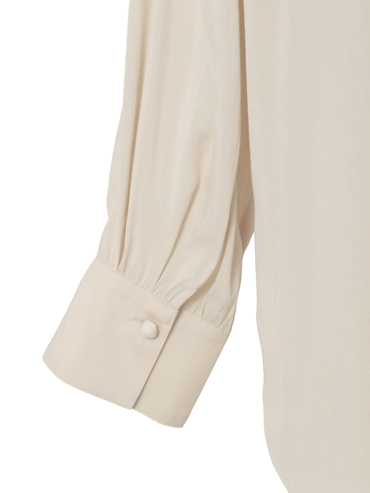 シルク特有の優雅な艶とさらりとしたドライな風合いを併せ持つ、上質なシルク複合素材を使用した長袖ブラウスです。