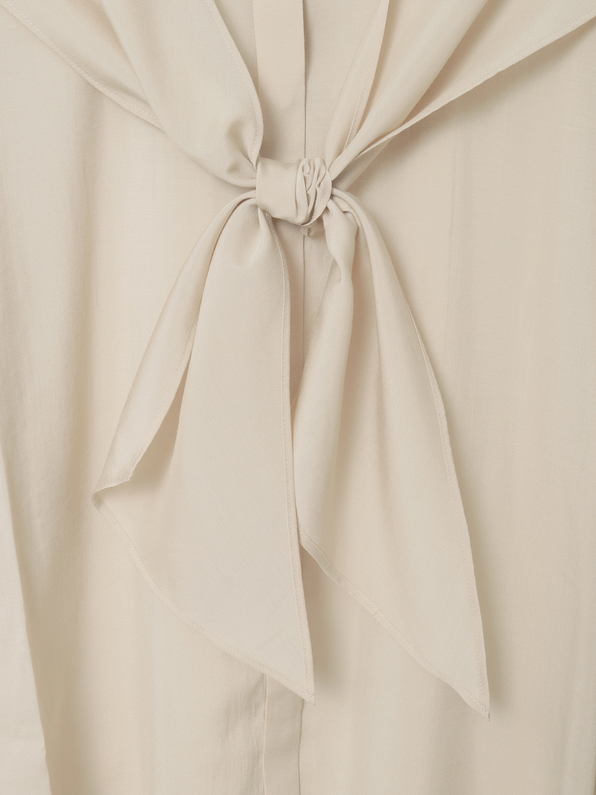 衿ぐりのリボンはタイ結びやリボン結びで雰囲気を自在にアレンジ可能。