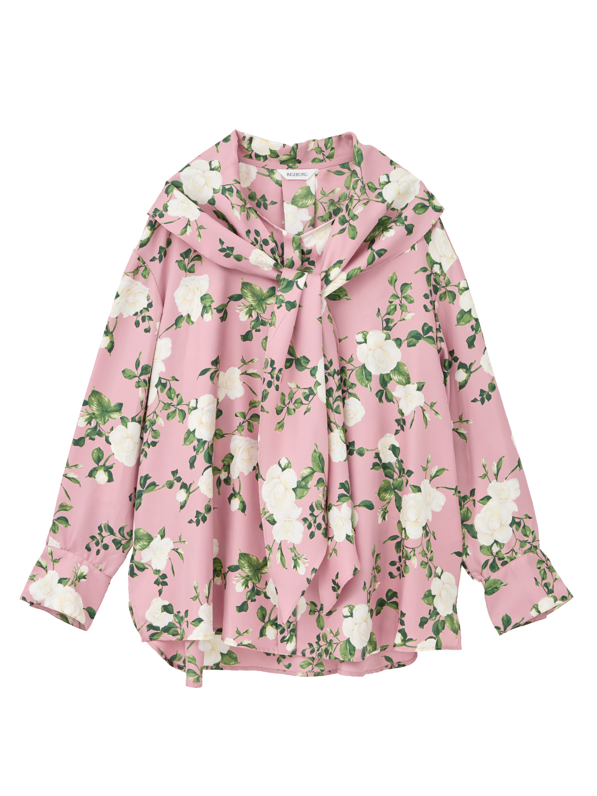 カメリアプリントを使用した長袖ブラウスです。
