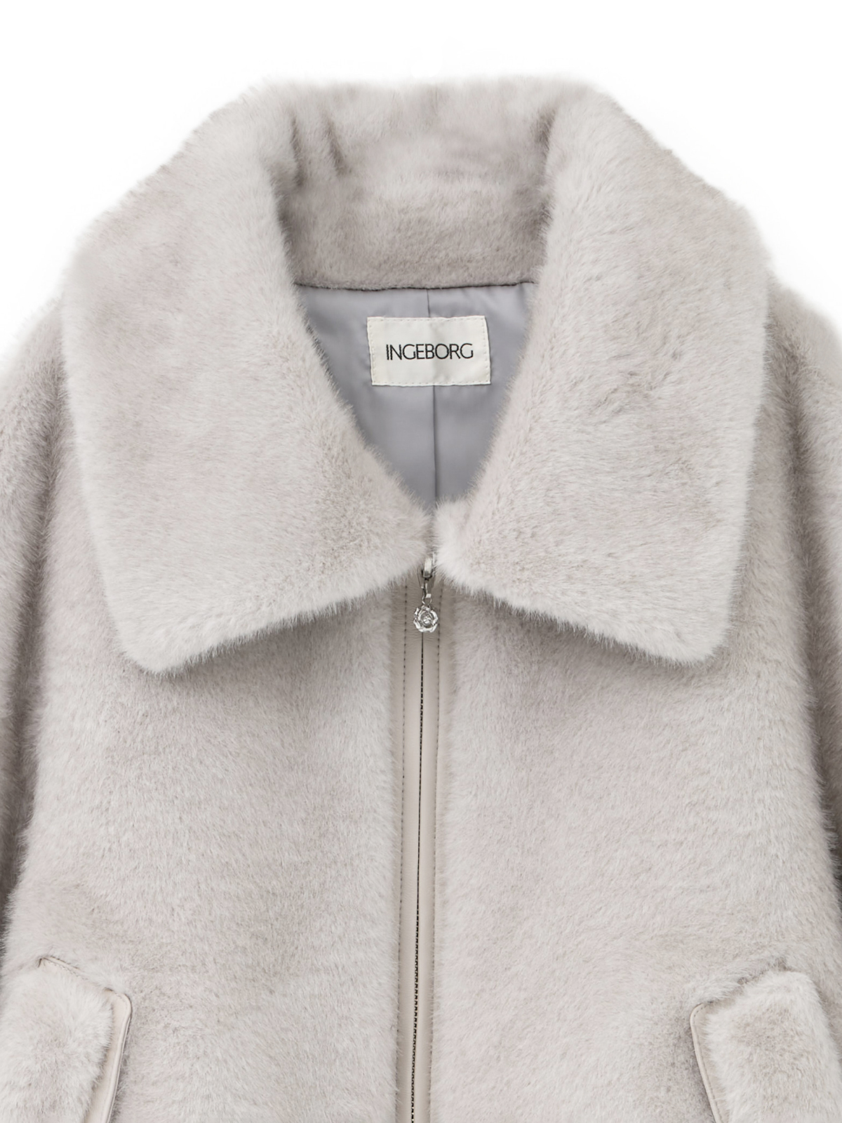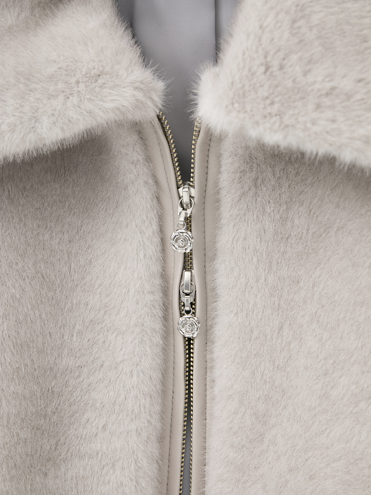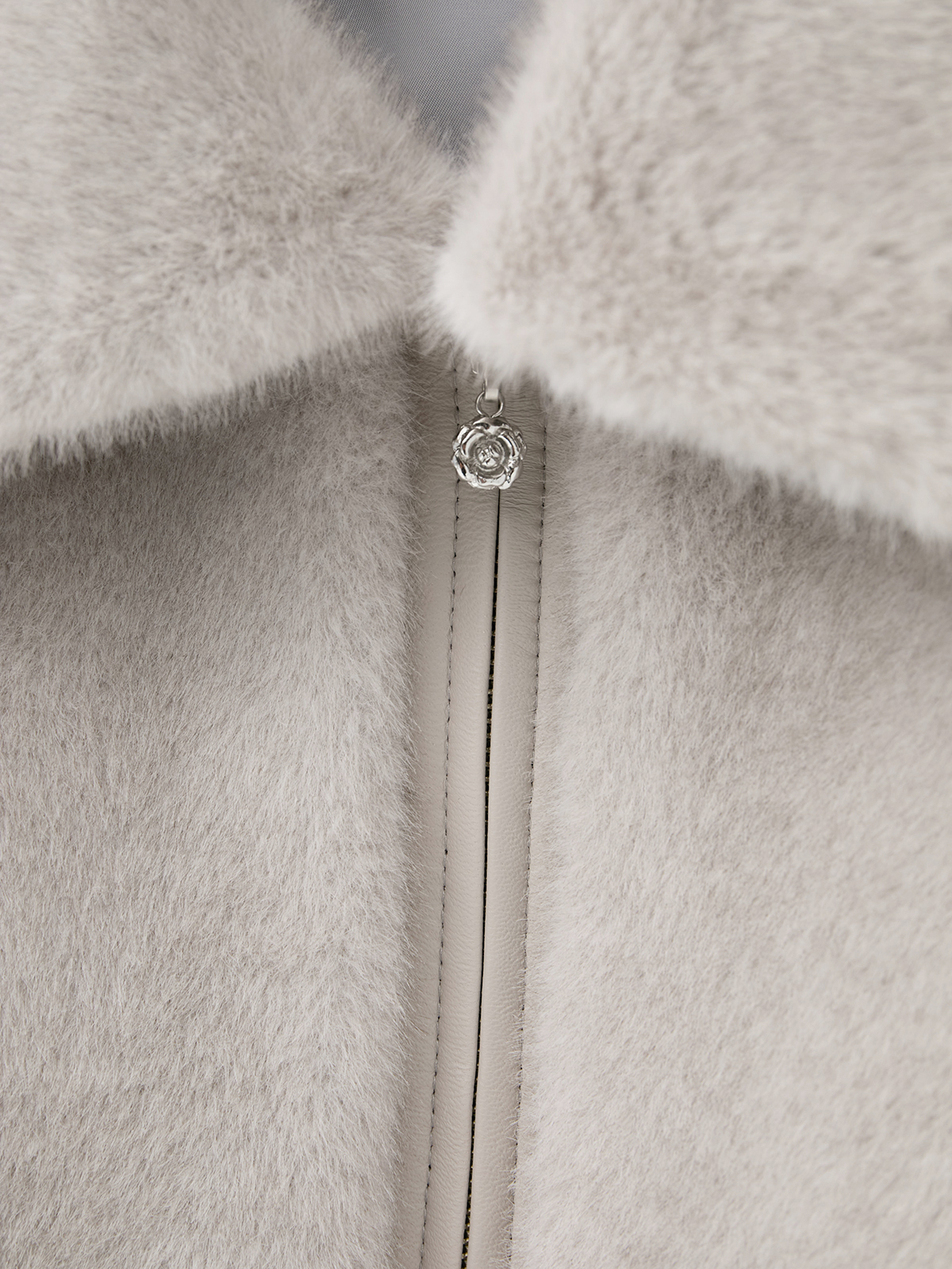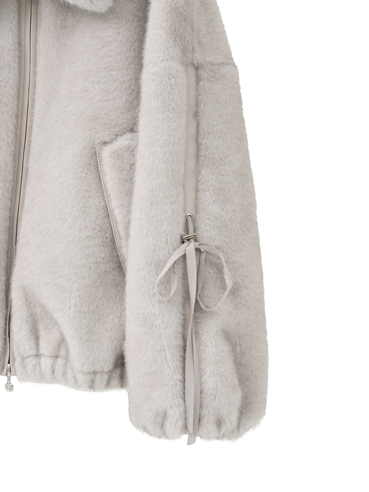 高級感あふれるミンクのような贅沢な手触りを叶えたエコファー素材を使用した一着。
