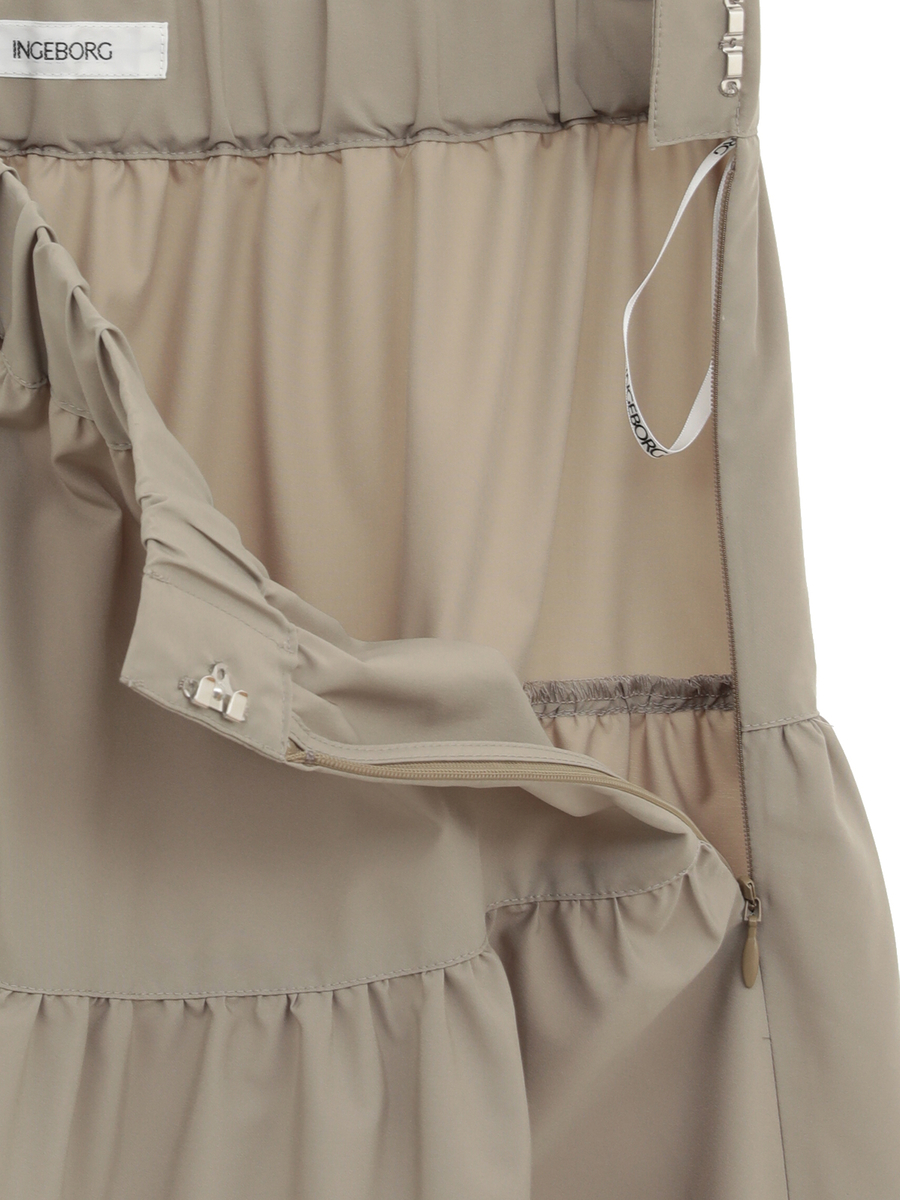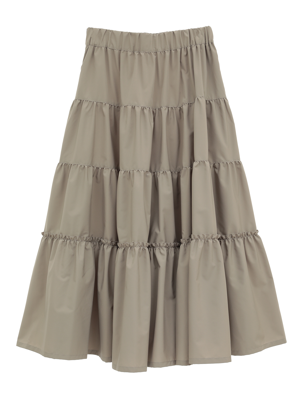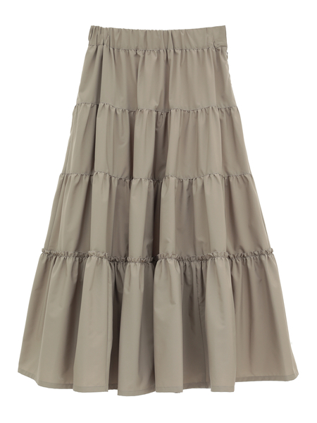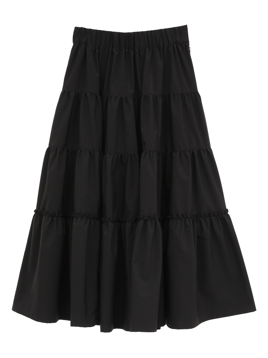柔らかな風合いと繊細なドレープが魅力の、4段ティアードデザインのロングスカート。