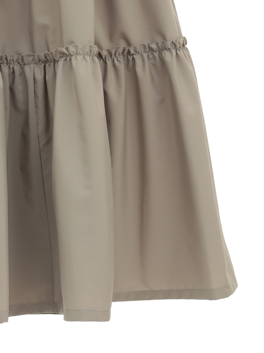 ふんわりと揺れるティアードシルエットが、歩くたびにやさしく波打ち、雨の日も気分まで優雅に。