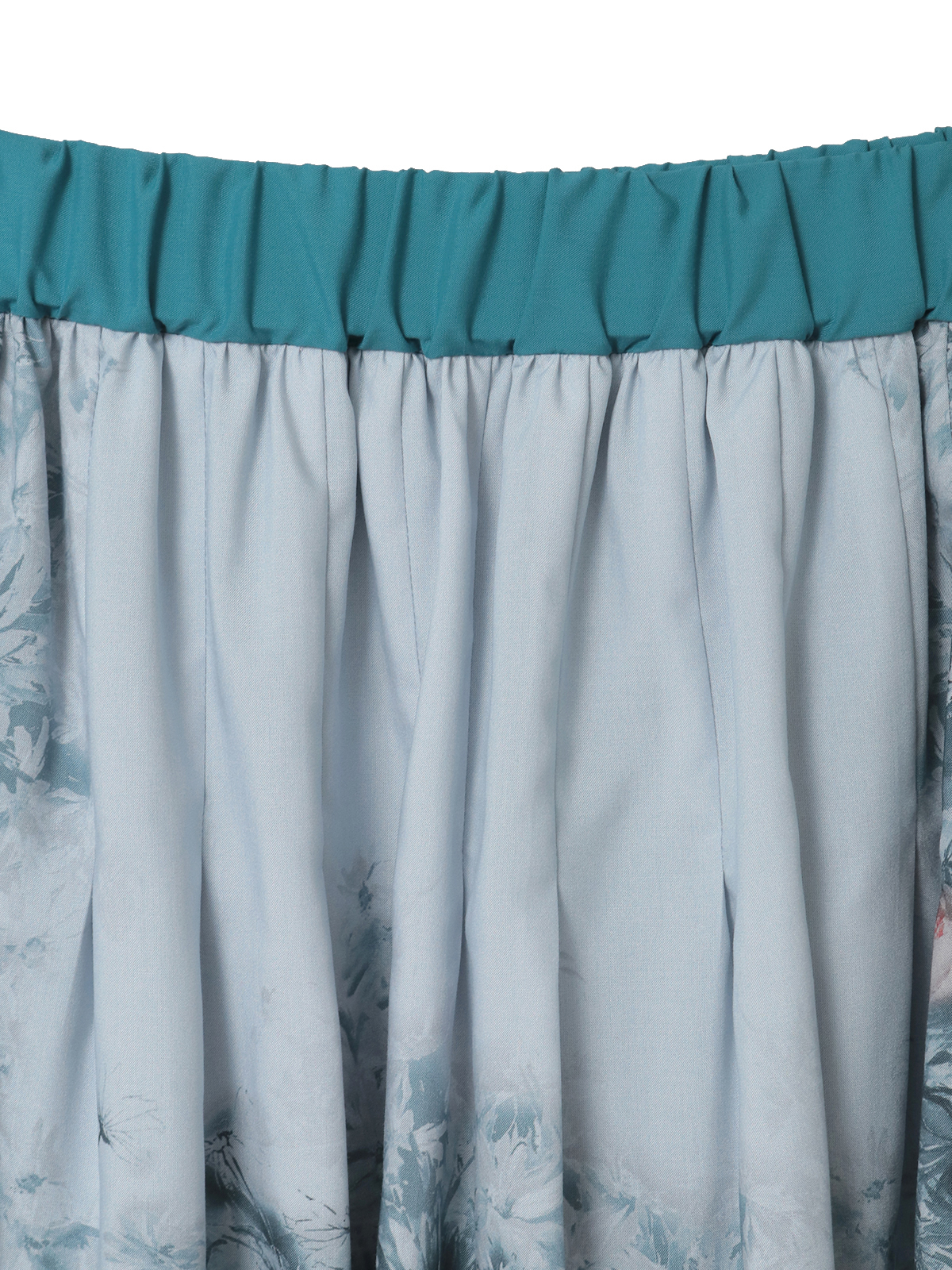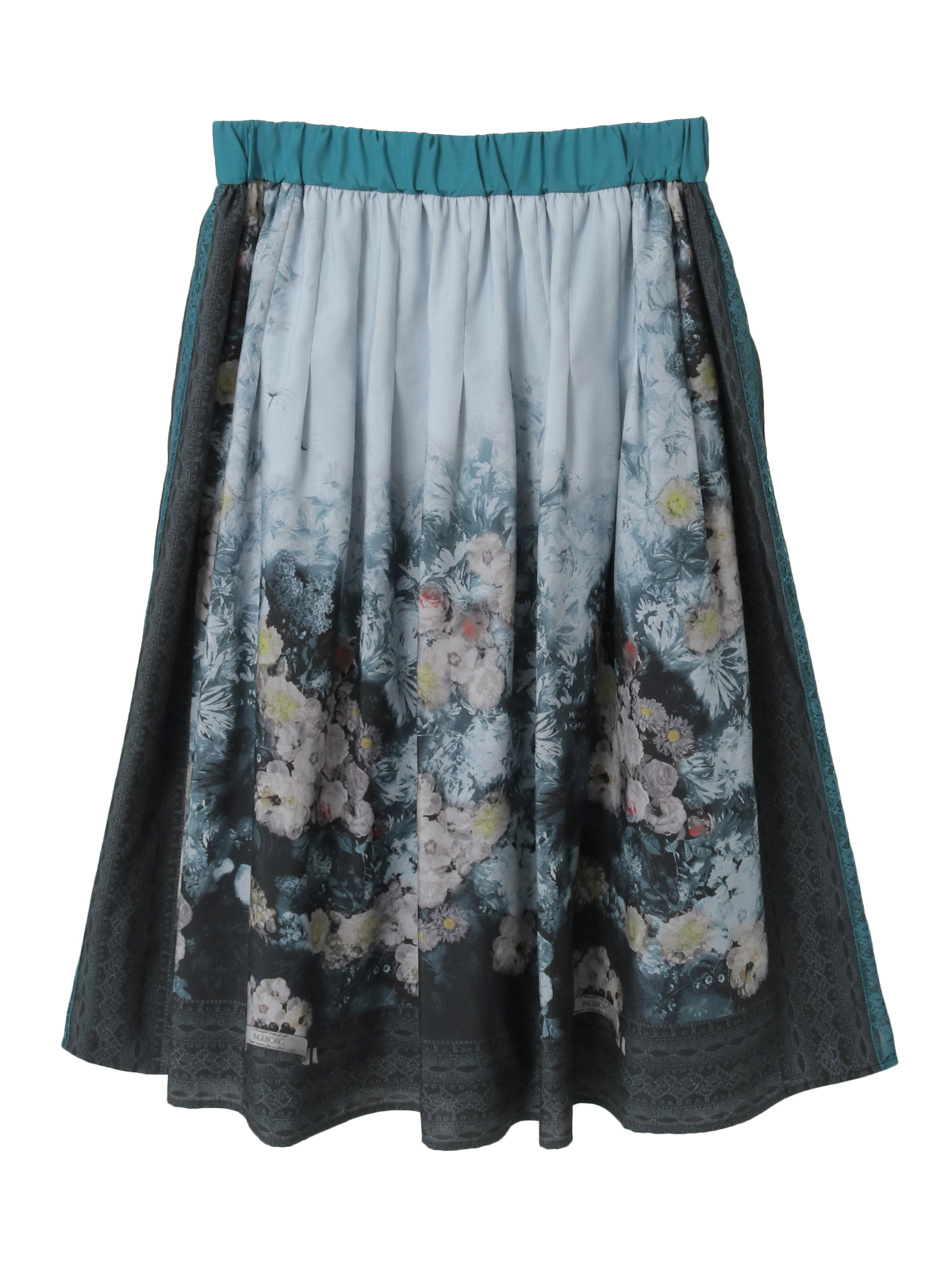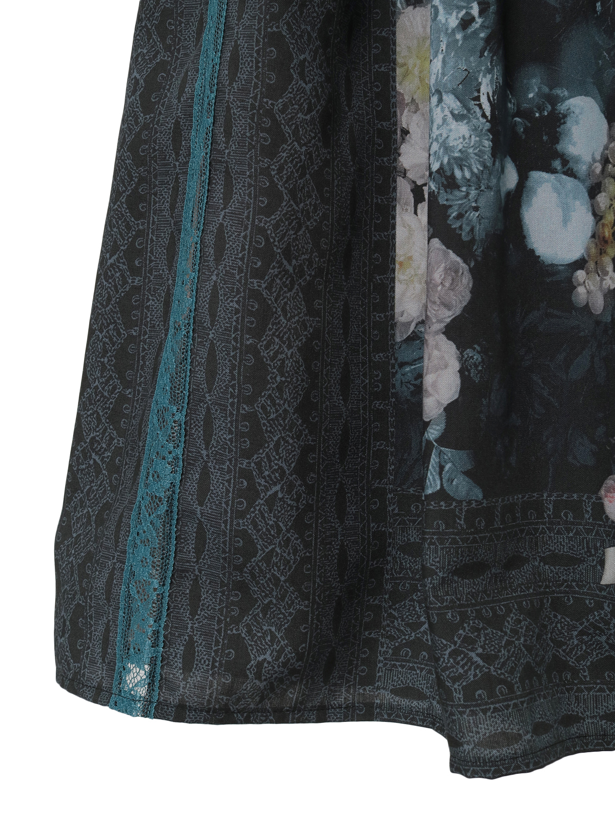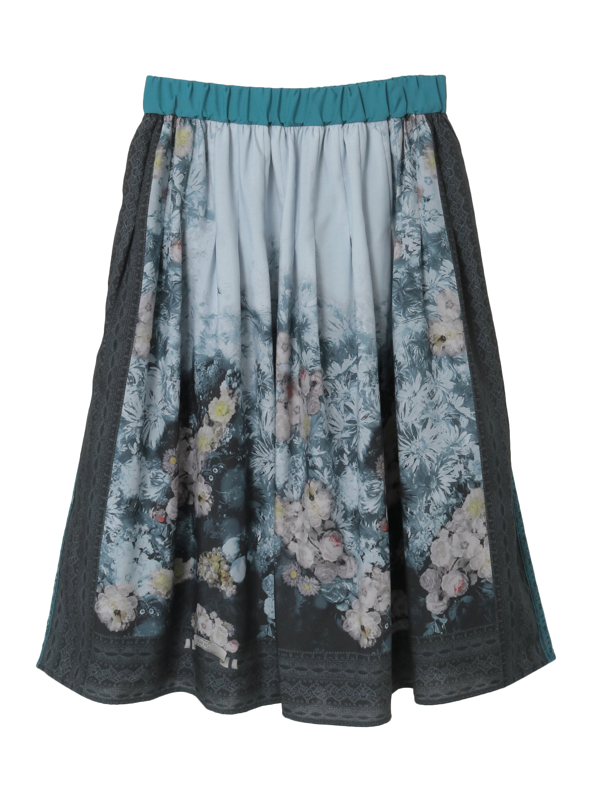 そんなストーリーを宿すプリント生地を贅沢に使用した、スカーフ風パネルデザインのミドル丈スカート。