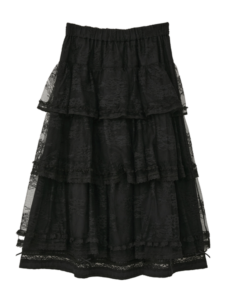 繊細なリバーレースに、麗しの庭に咲く可憐なボタニカルフラワーをモチーフとして描いた、特別なティアードスカート。