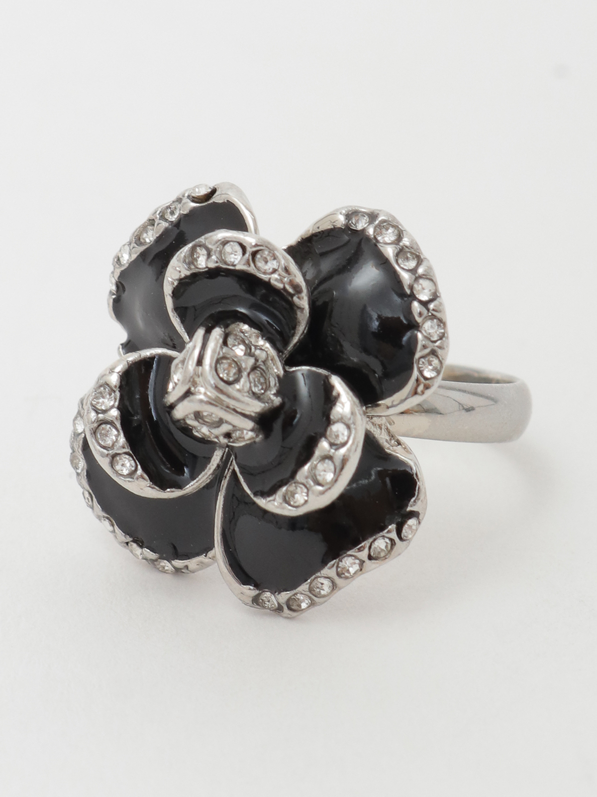 花びら部分は樹脂素材で仕上げられ、シックなクロと清楚なオフの2色展開で、多彩なスタイルに馴染みます。