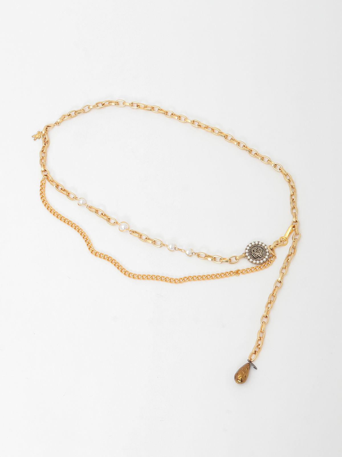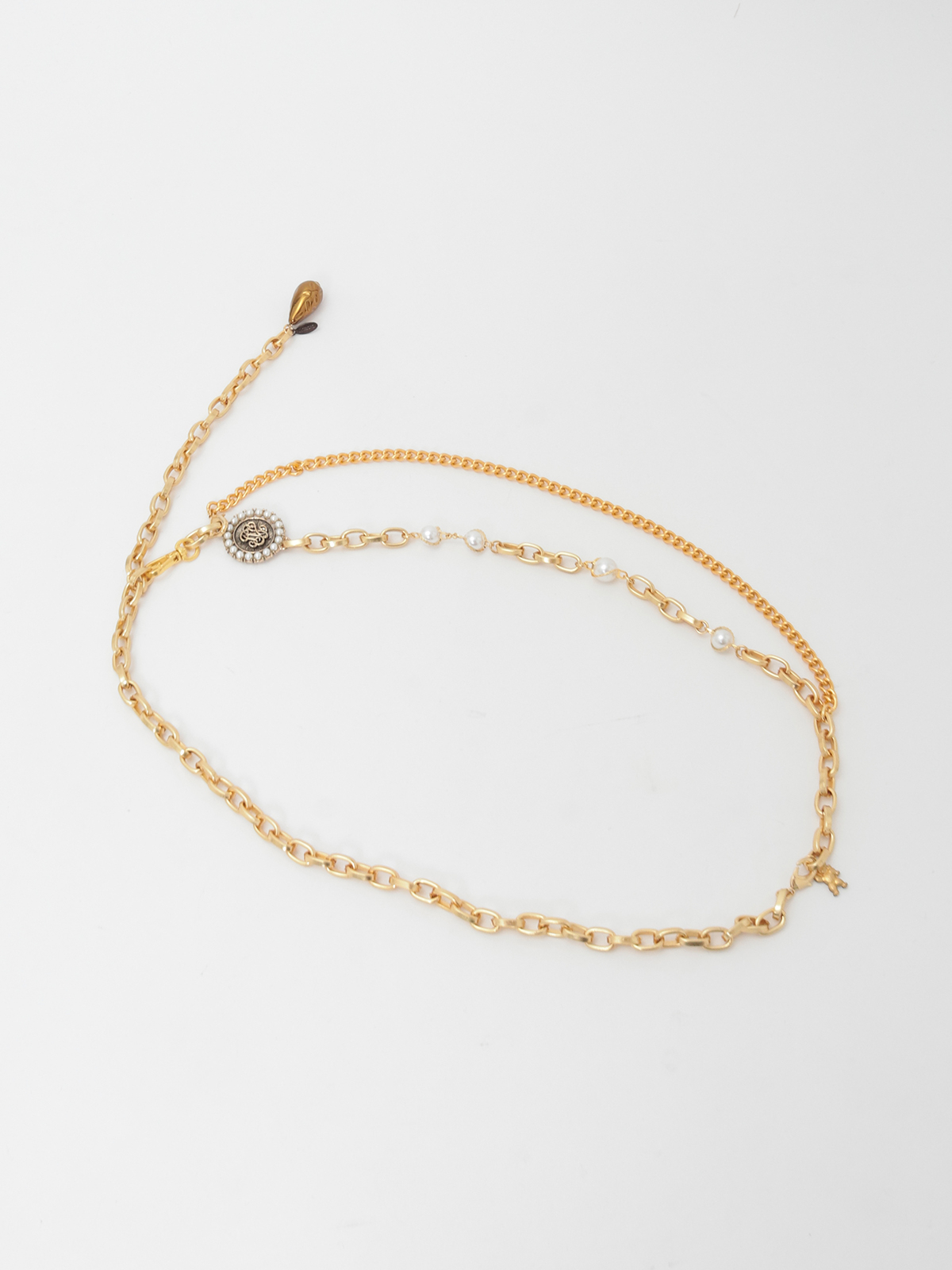 立体感のあるメダリオンパーツがアクセントになったチェーンベルト。