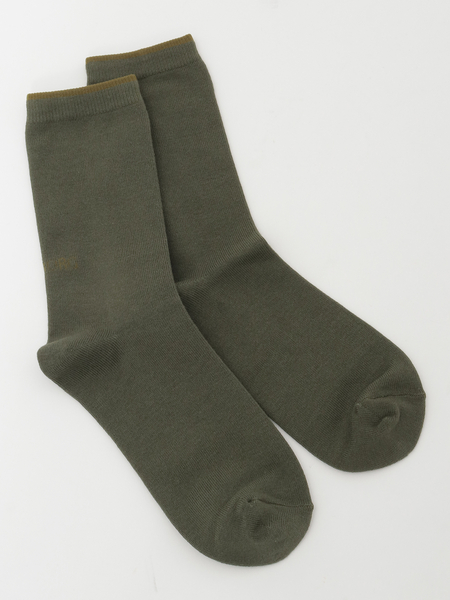 後ろ側にさりげなく施されたロゴと、口部分が同系色でまとめられた、上品なバランスが魅力のクルーソックス。