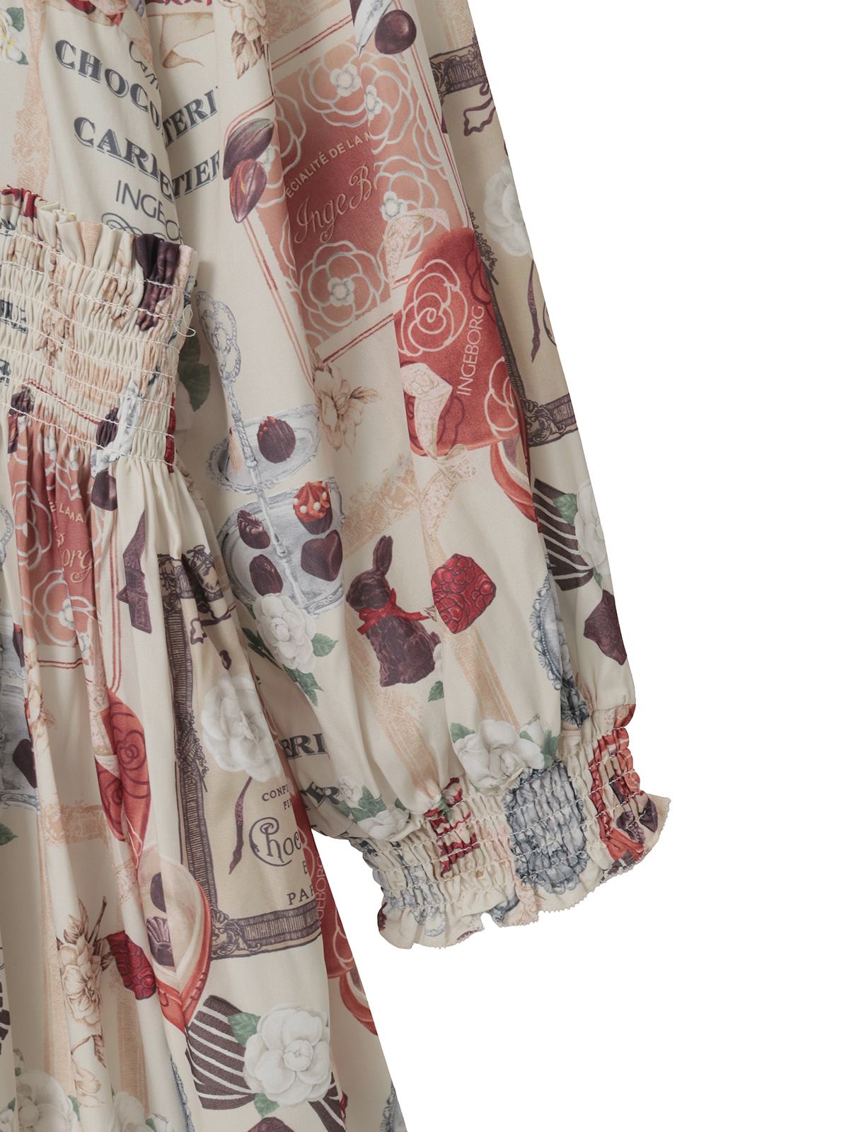 袖口にもシャーリングをほどこし、優しく手元を包む長袖デザイン。