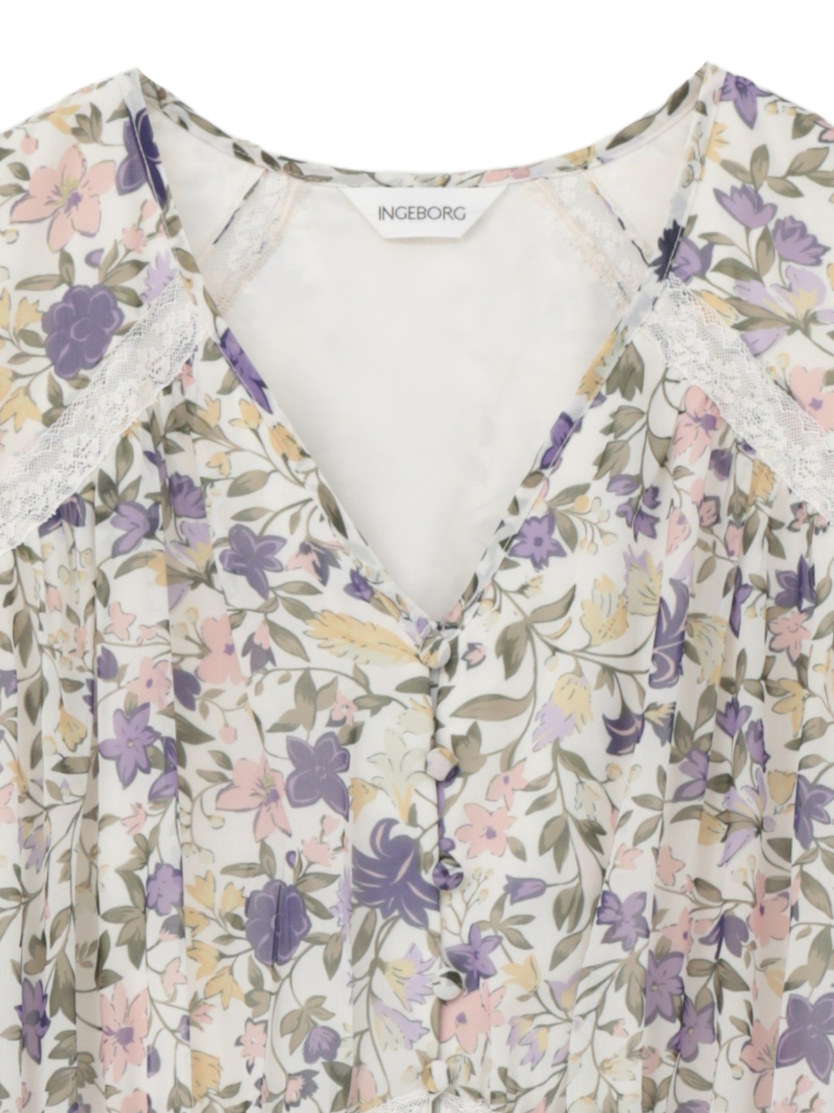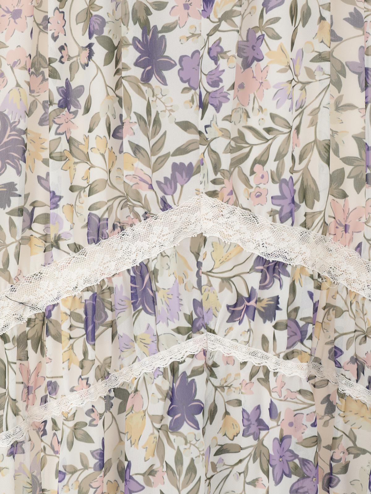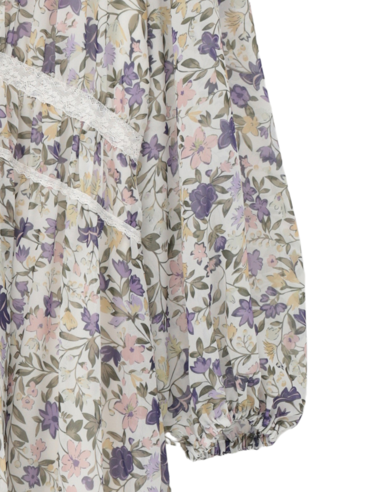 オリジナルの小花を散りばめたガーデンプリントは、まるで陽だまりの庭をそのまま映したような可憐さ。