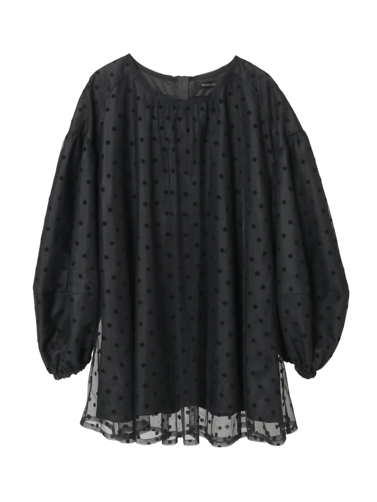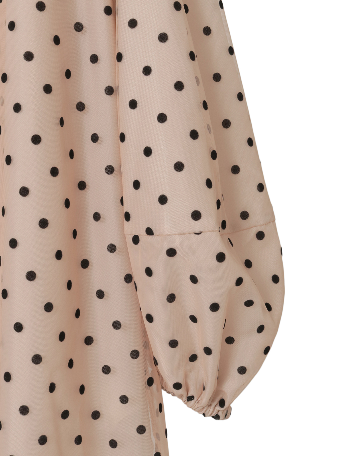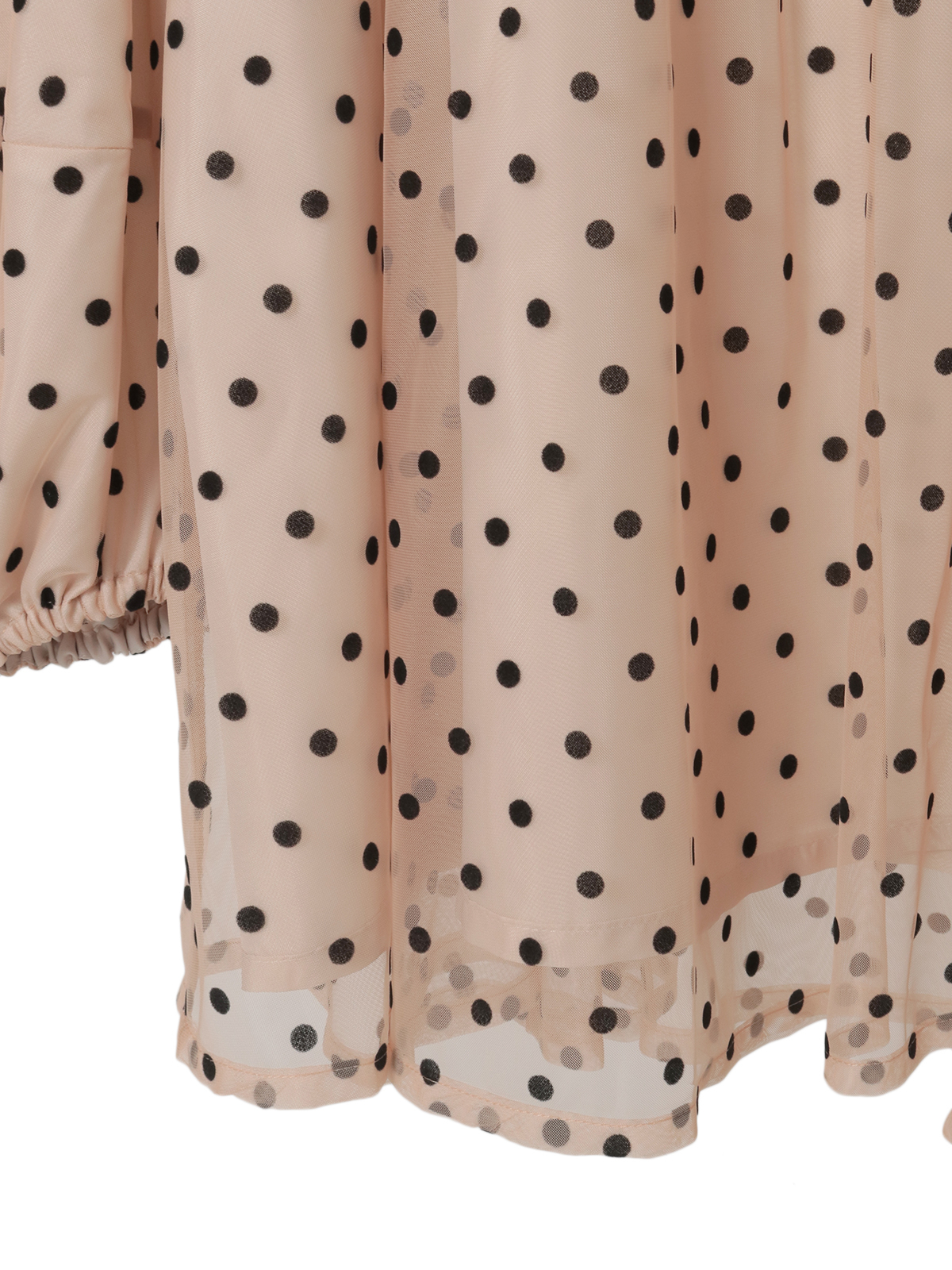 繊細なチュールにそっと描かれたドットフロッキーが、光を受けてやさしく揺れる一枚。