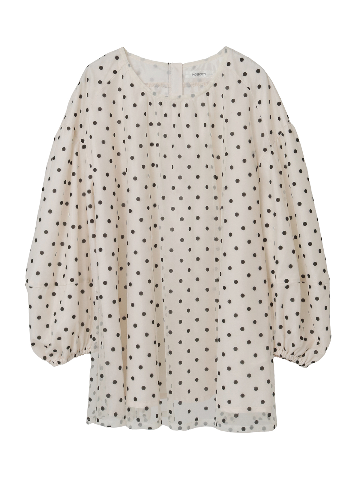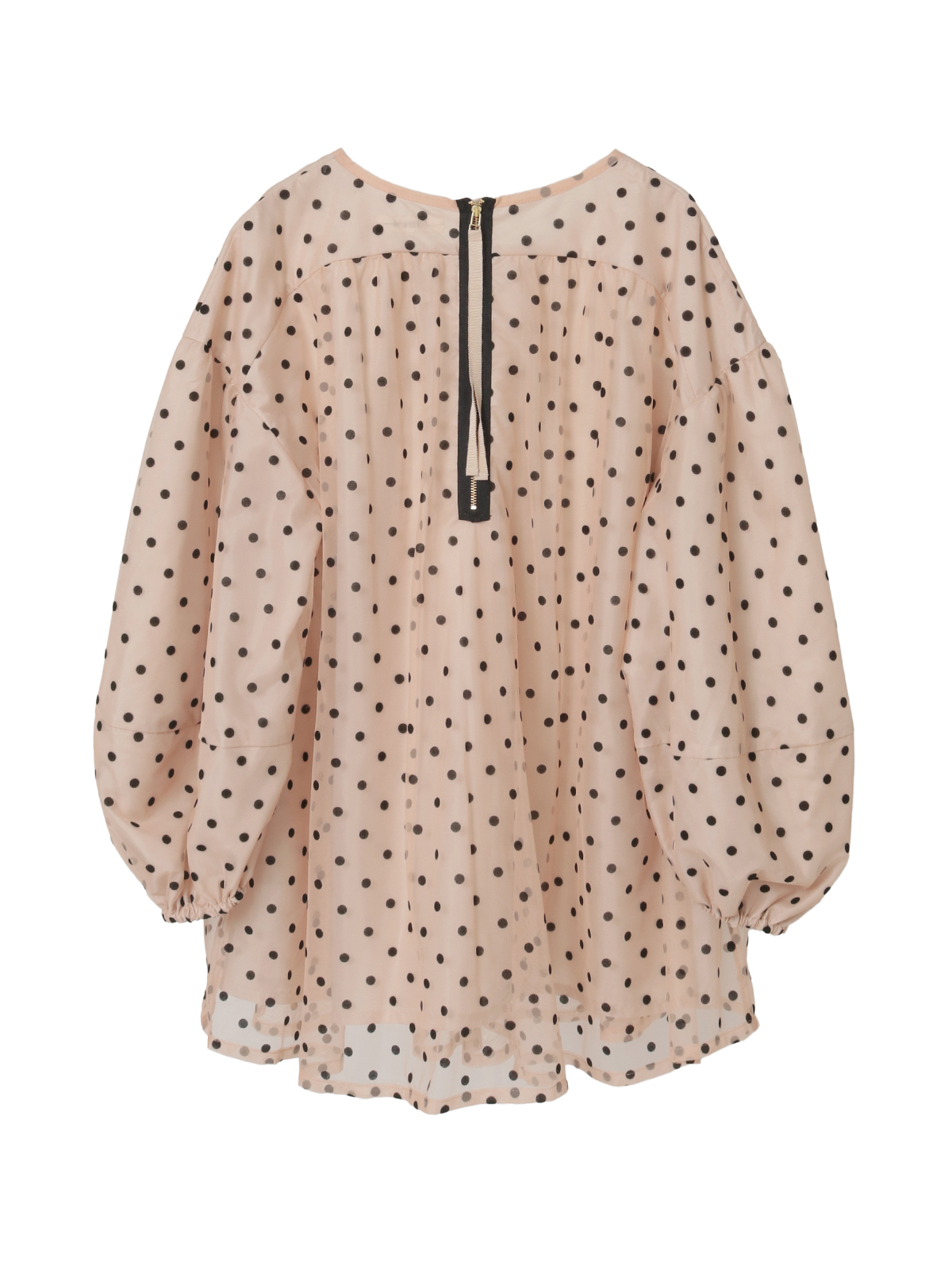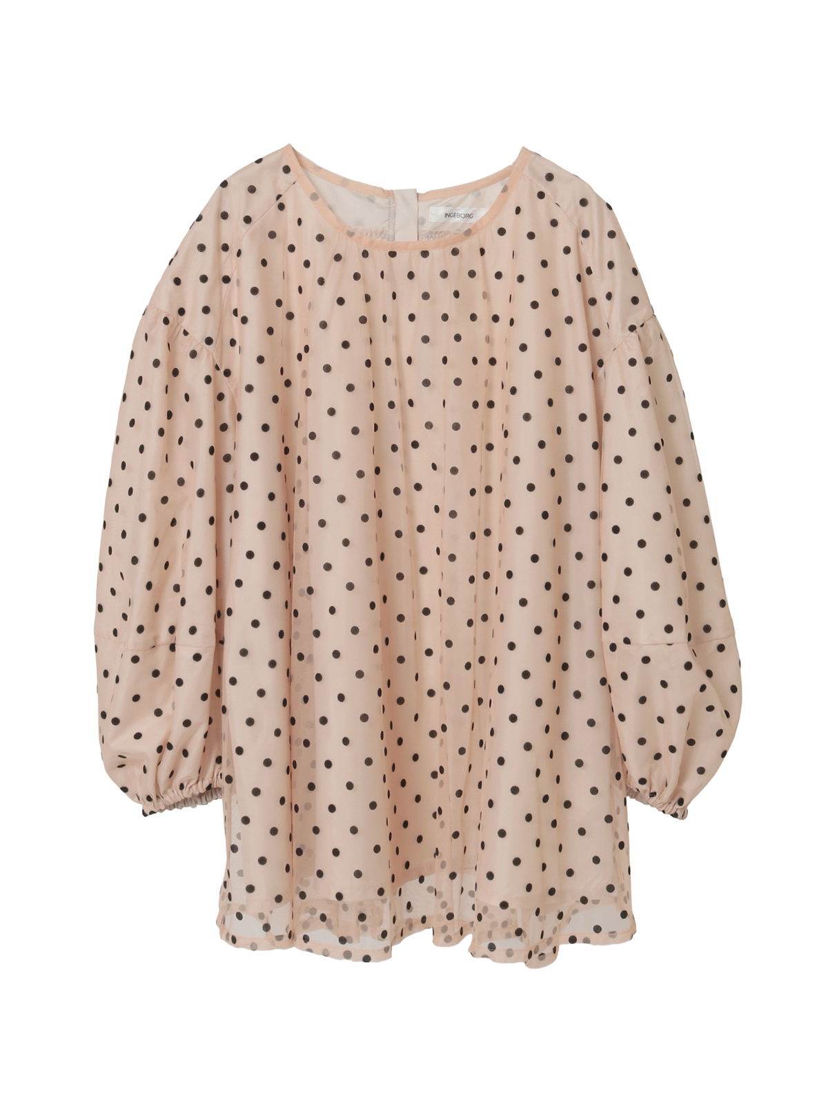 繊細なチュールにそっと描かれたドットフロッキーが、光を受けてやさしく揺れる一枚。