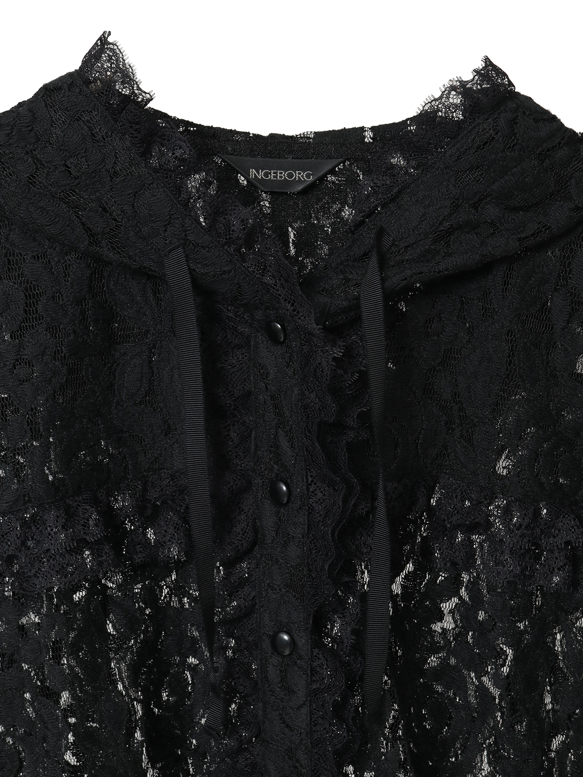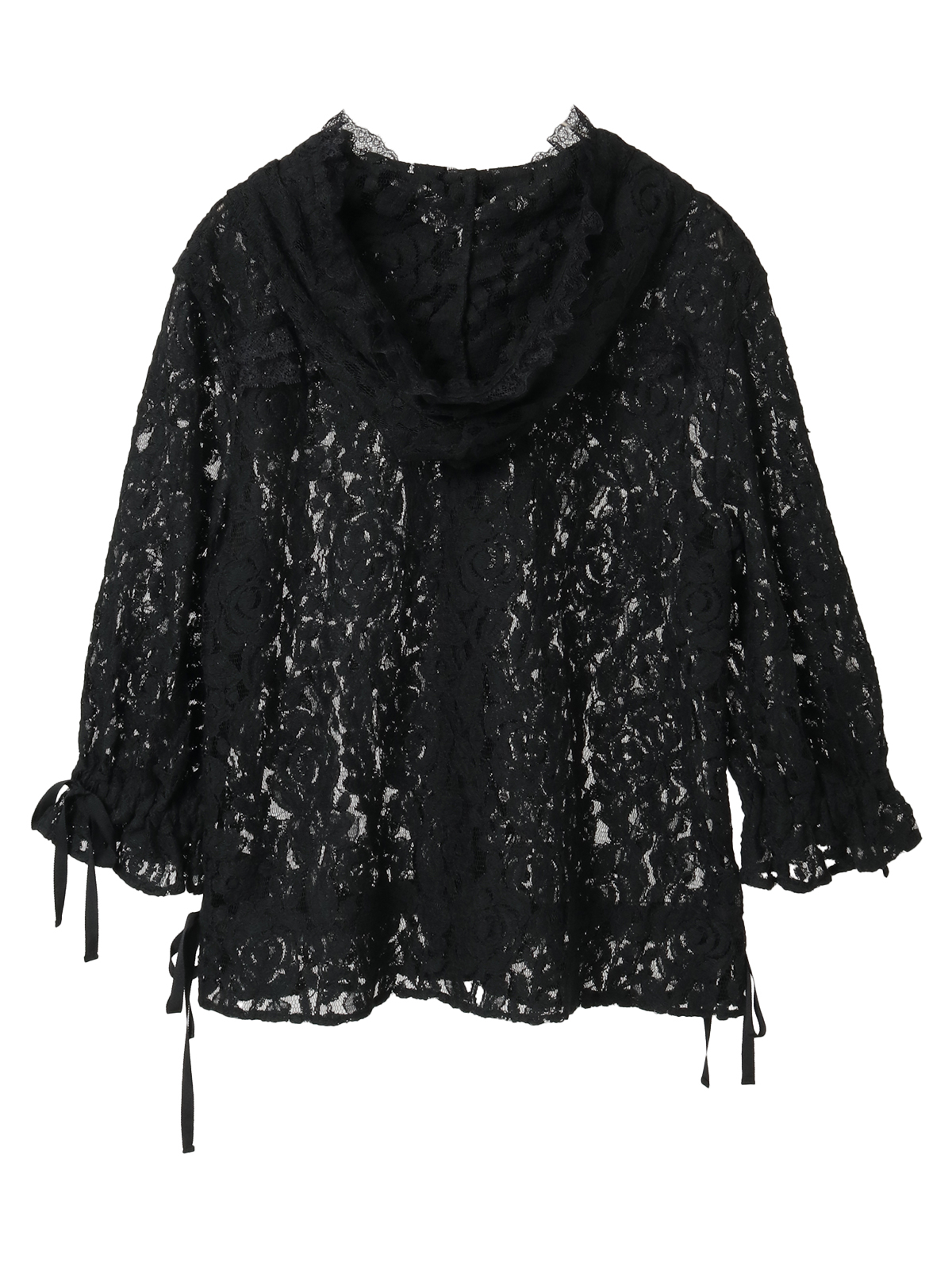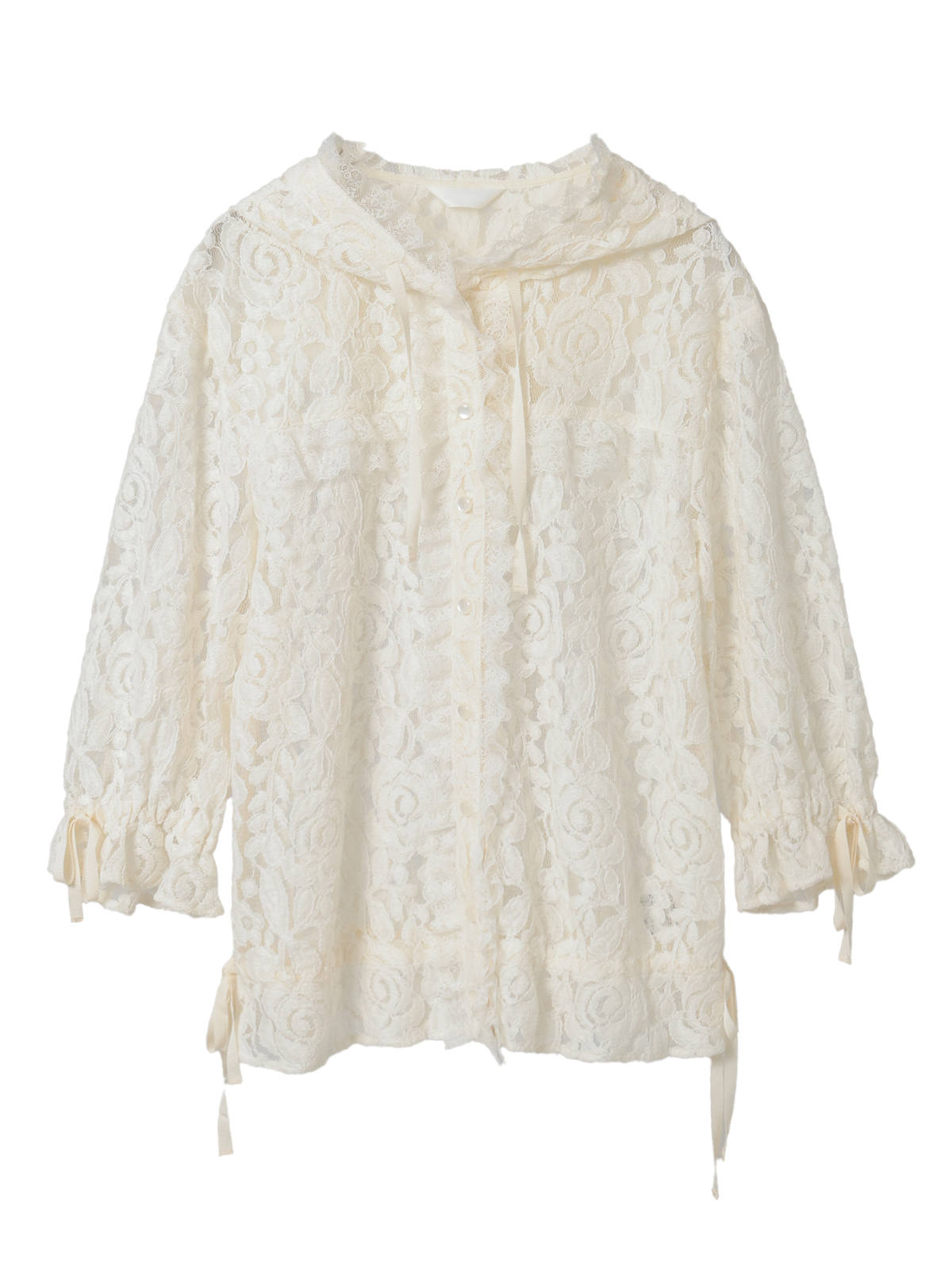 バラ柄を繊細に描き出したレース素材が、軽やかに華やぐフード付きブラウス。