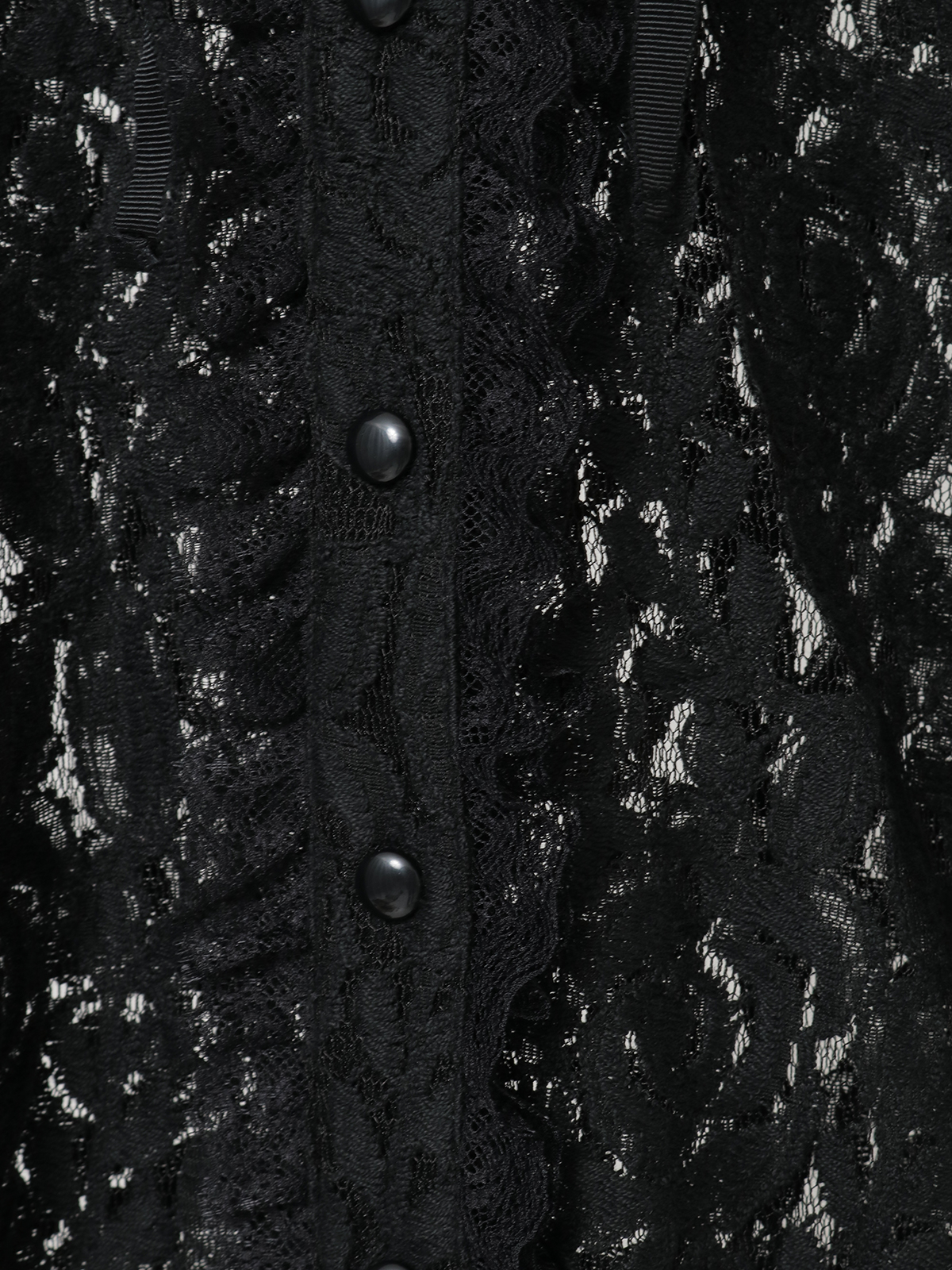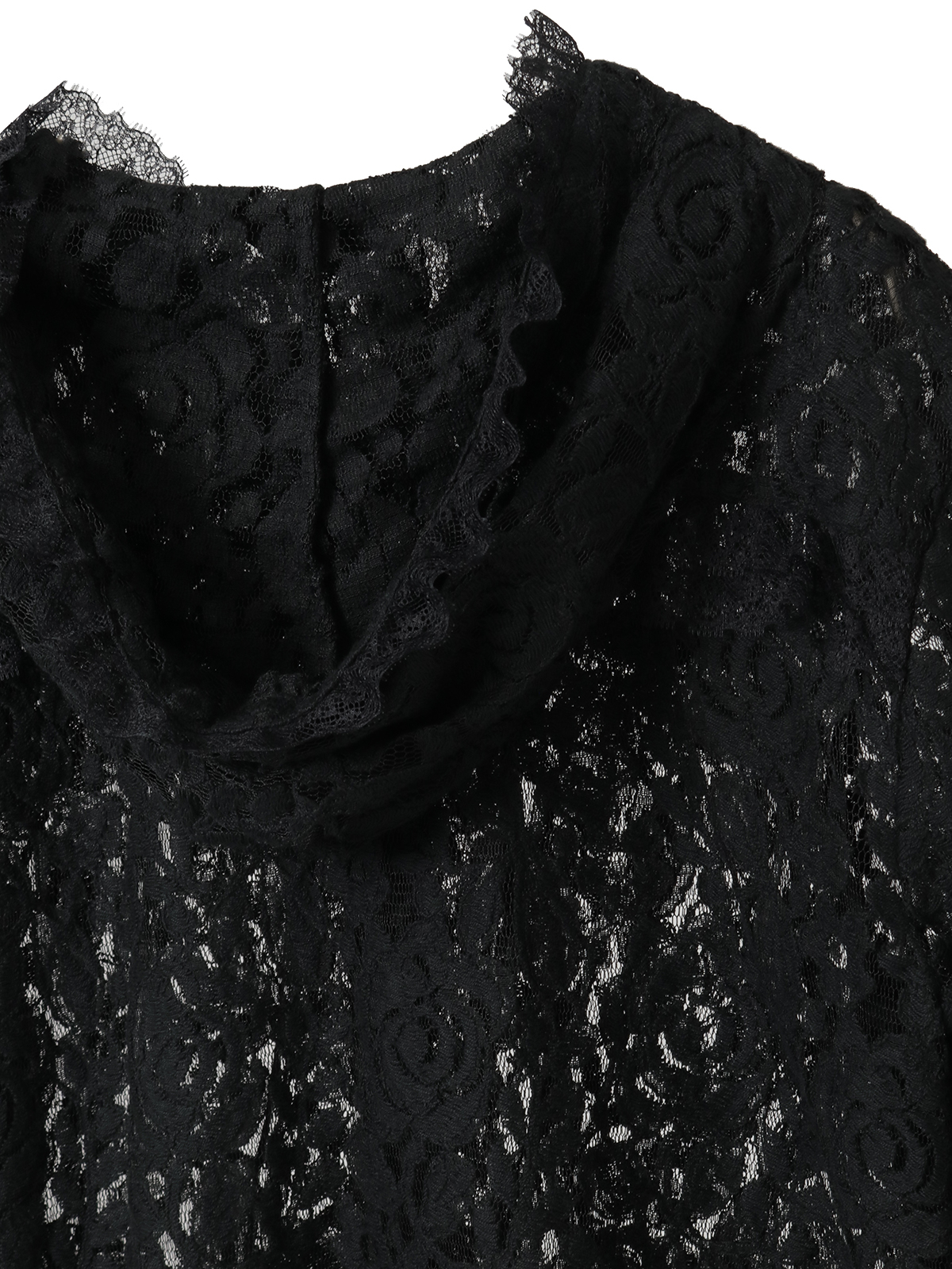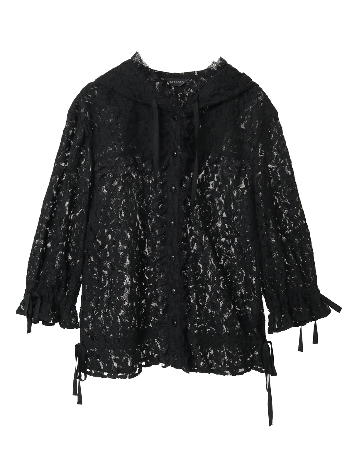 バラ柄を繊細に描き出したレース素材が、軽やかに華やぐフード付きブラウス。