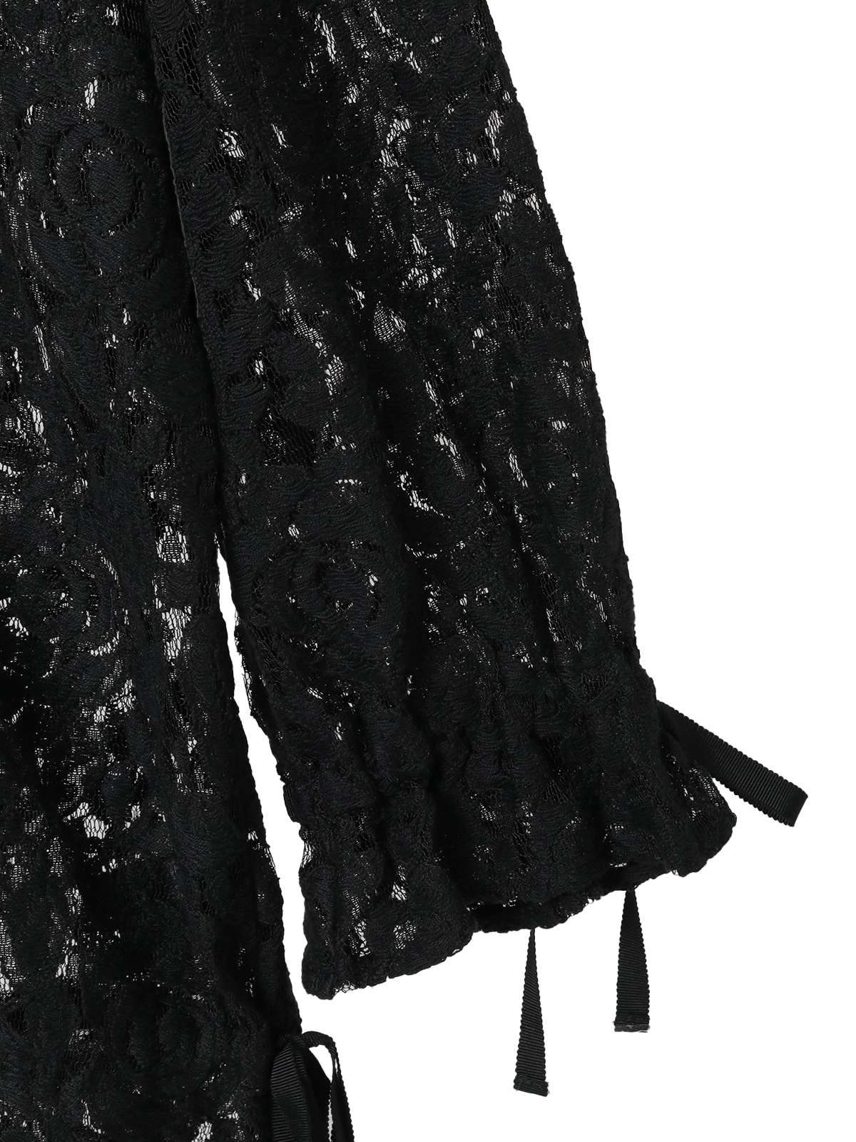 軽やかでありながら表情豊かに揺れるフラワーレースが、日常の装いにそっと華やぎと奥行きをもたらす一枚です。