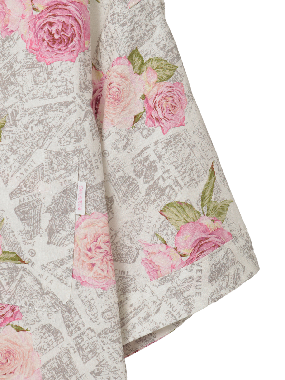地紋にはパリの地図を描き、エトワール広場から12の路地が放射状に広がる花の都パリの上に、優雅なローズを重ねた印象的なプリントを施しました。