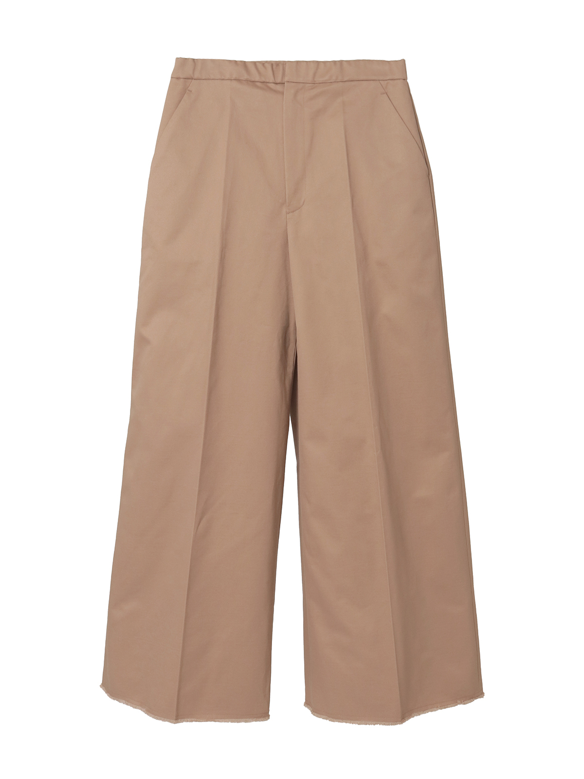 裾に向かってゆるやかに広がるワイドシルエットは、風を含むような軽やかさを演出。