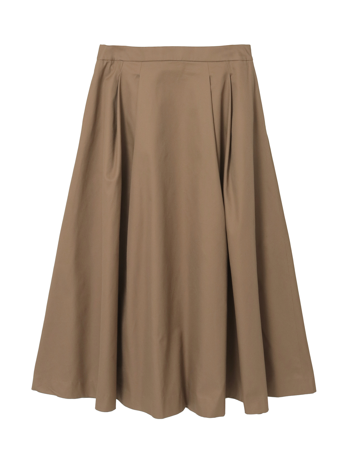 高密度に織り上げたコットン100%のヴィンテージギャバジンは、軽やかさと程よいハリを併せ持ち、タックやフレアの美しいシルエットを優雅に引き立てます。