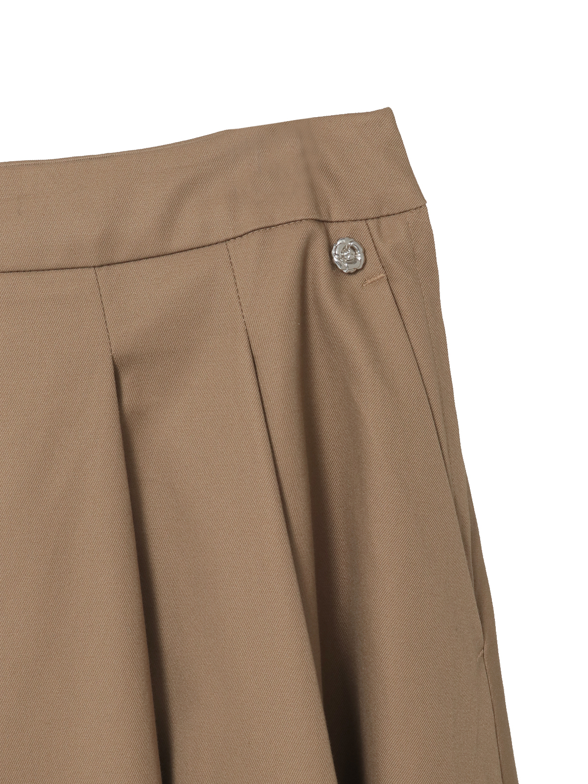 両サイドに大きく施した二本のタックが、歩くたびに軽やかに揺れ、立体的で豊かな表情を生み出します。
