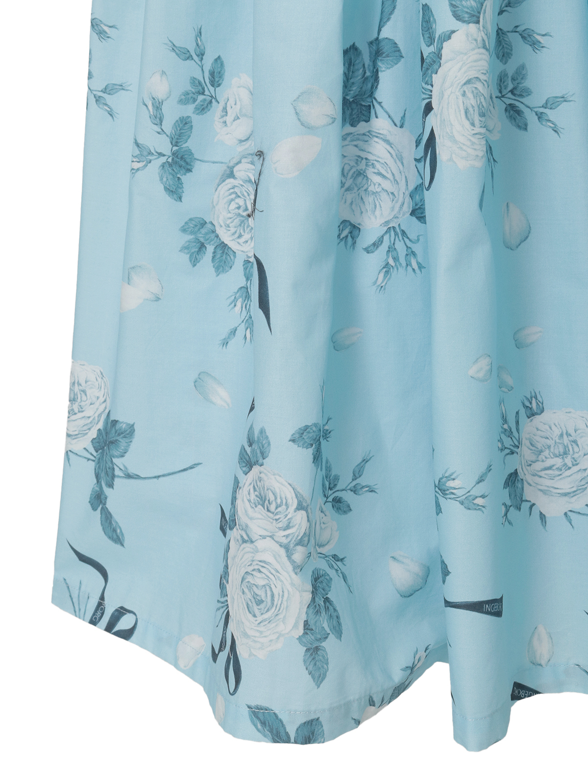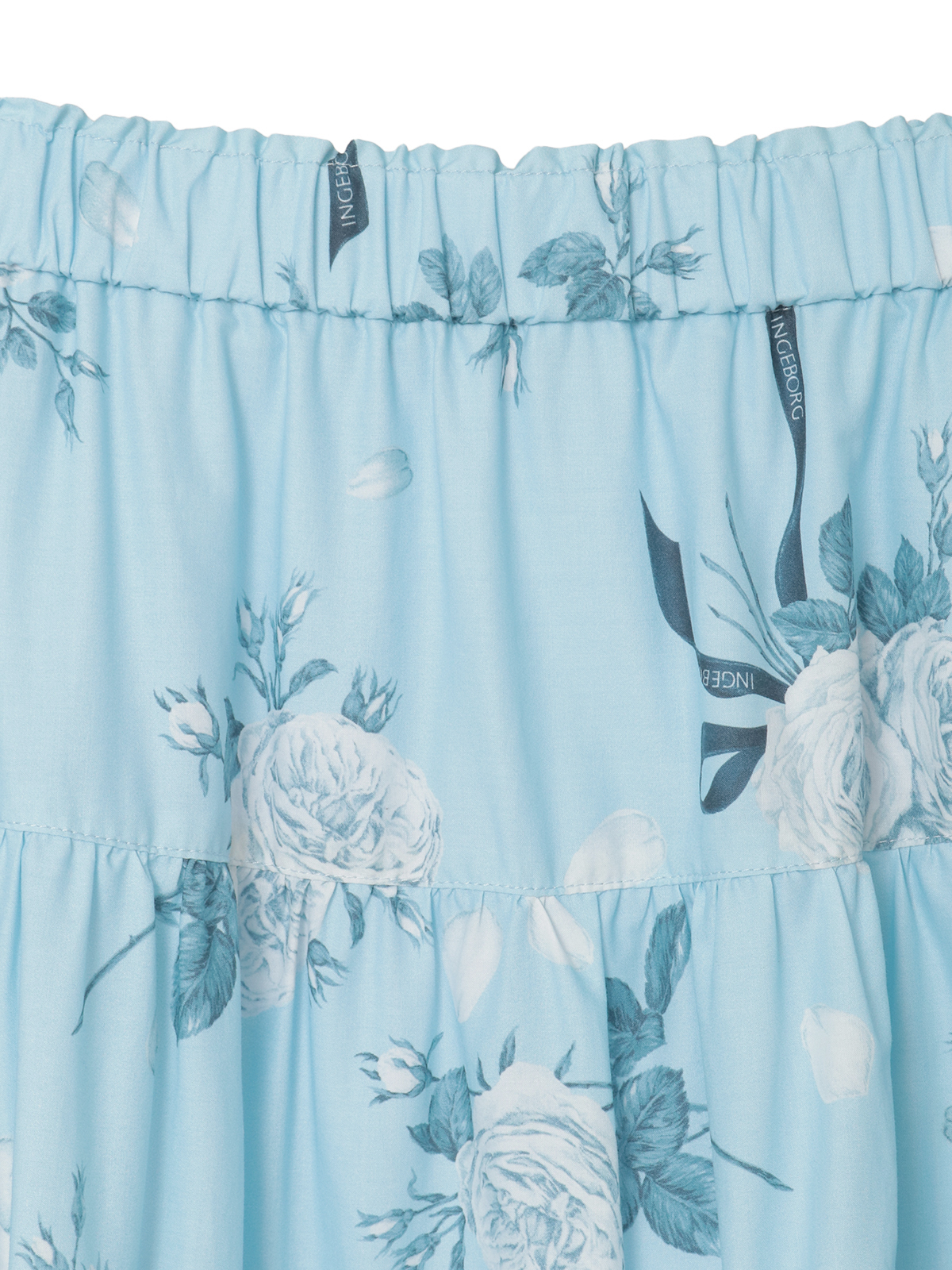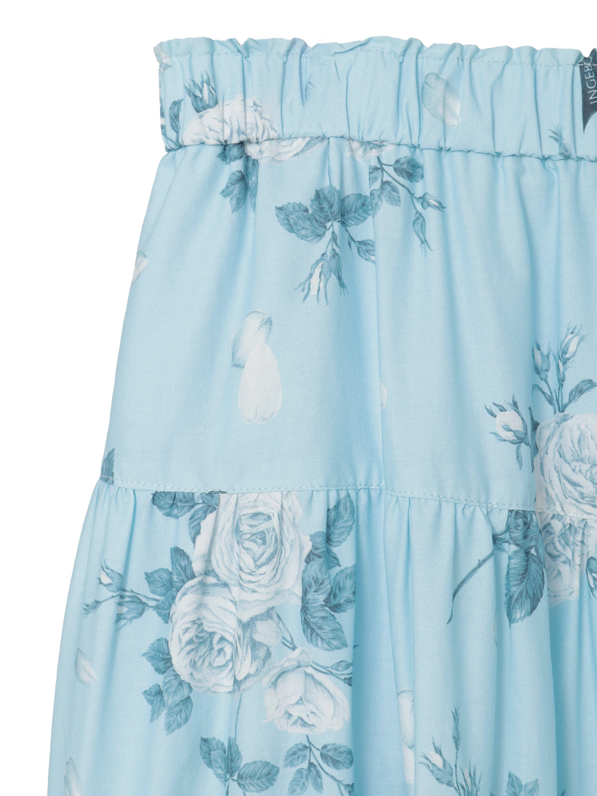 エッチング版画のように繊細な線で描かれたローズが、静かに物語を咲かせるティアードスカート。
