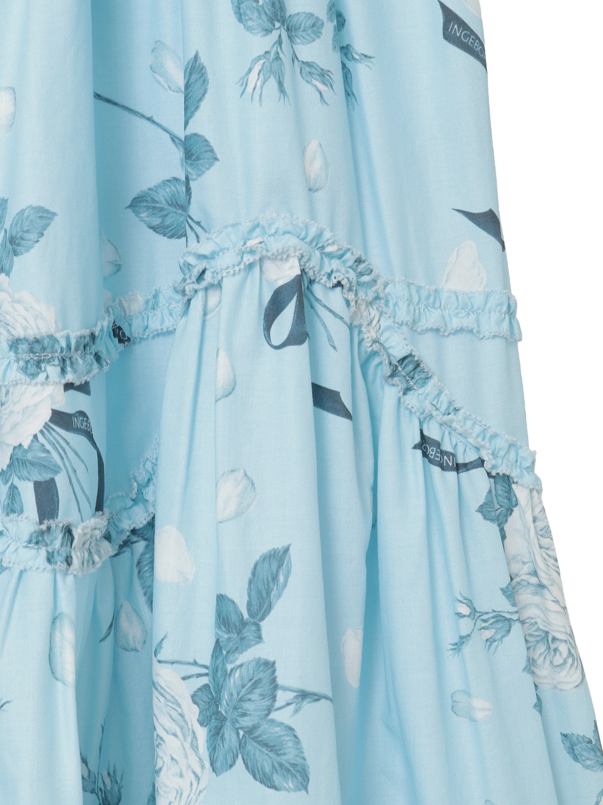 二段目のスカート部分には、ツタが絡うようにピコフリルをあしらい、控えめながらもロマンティックなアクセントに。