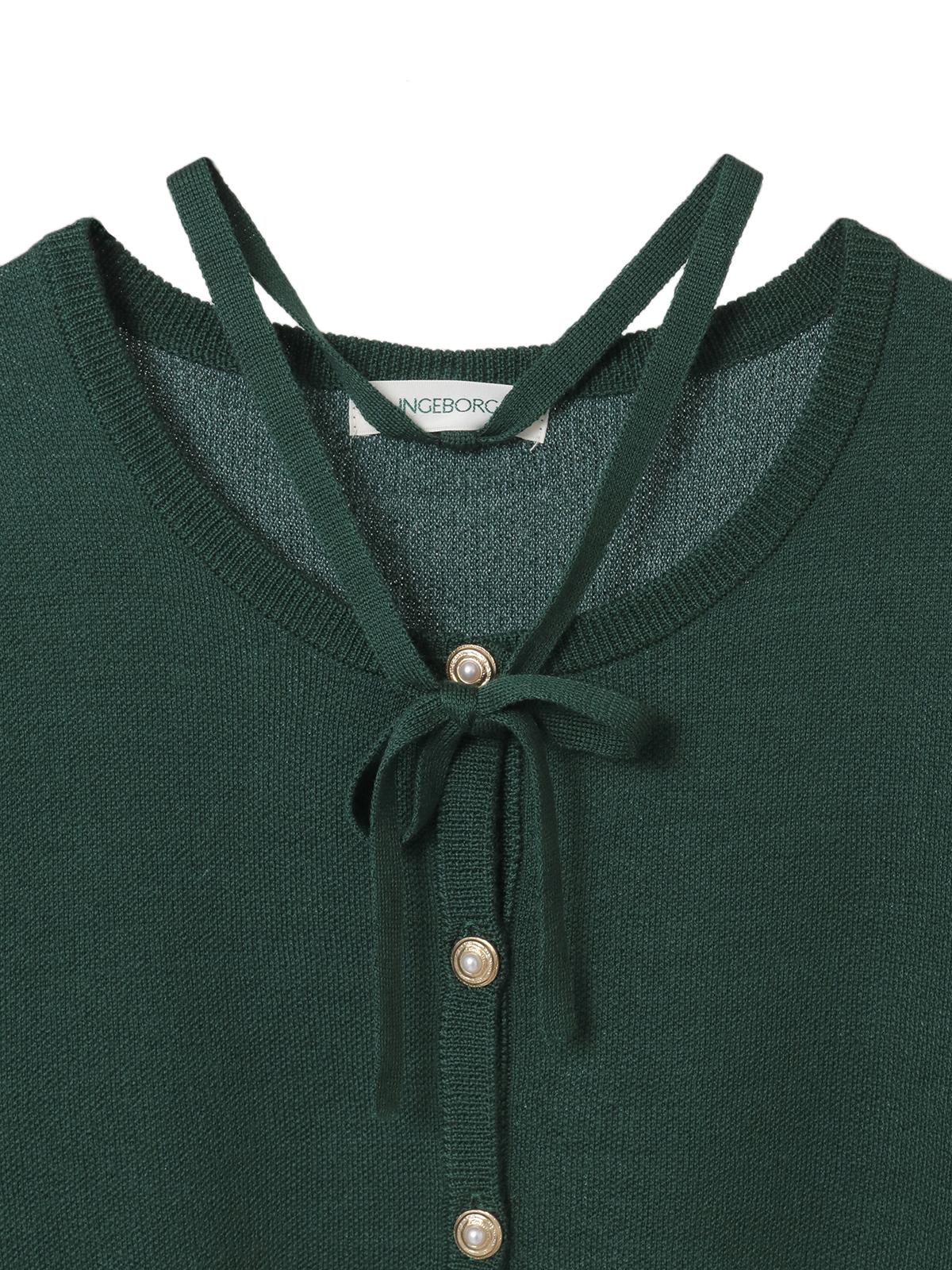 ネックには小さなリボンを添えて、結ぶたびに胸元で上品な甘さがひらく仕掛けを。