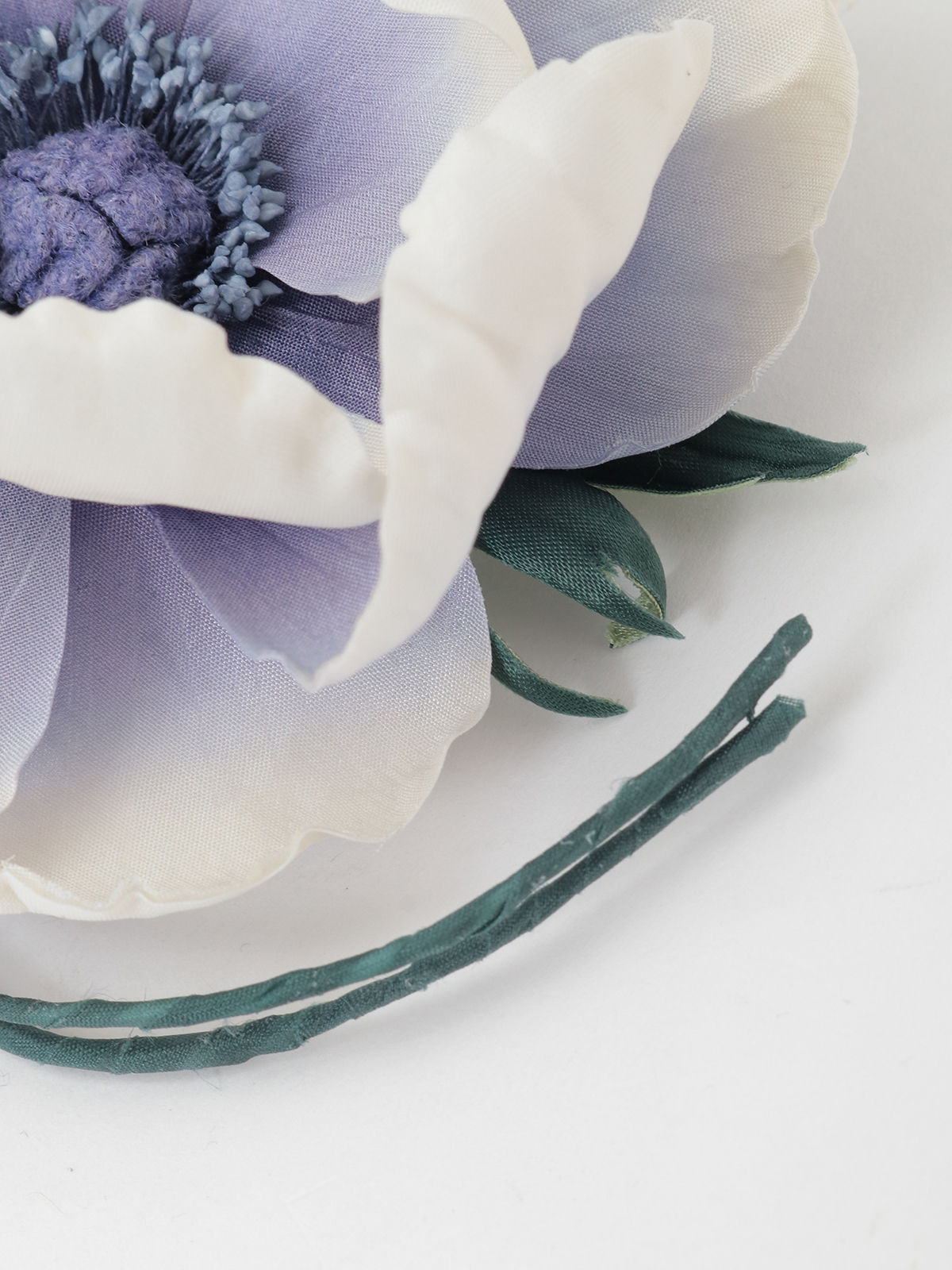 白・ピンク・パープルの3色展開で、ひとつひとつ丁寧に染め上げられた花びらは、自然なグラデーションと柔らかな立体感を帯び、まるで本物の花のように華やかに揺れます。
