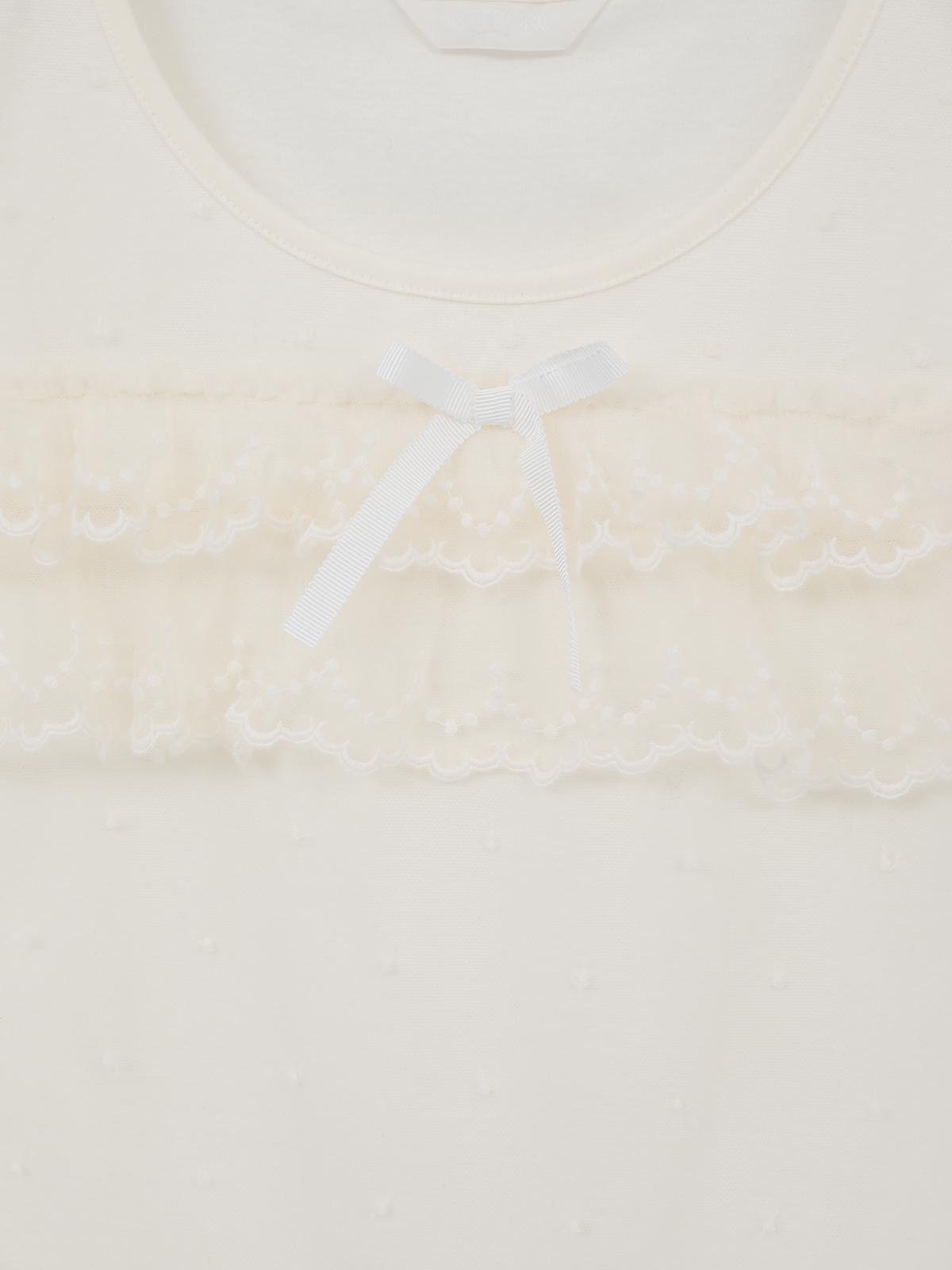 ヴィクトリアン調の繊細な美意識を纏う、カットソーとレースが調和したチュニック。