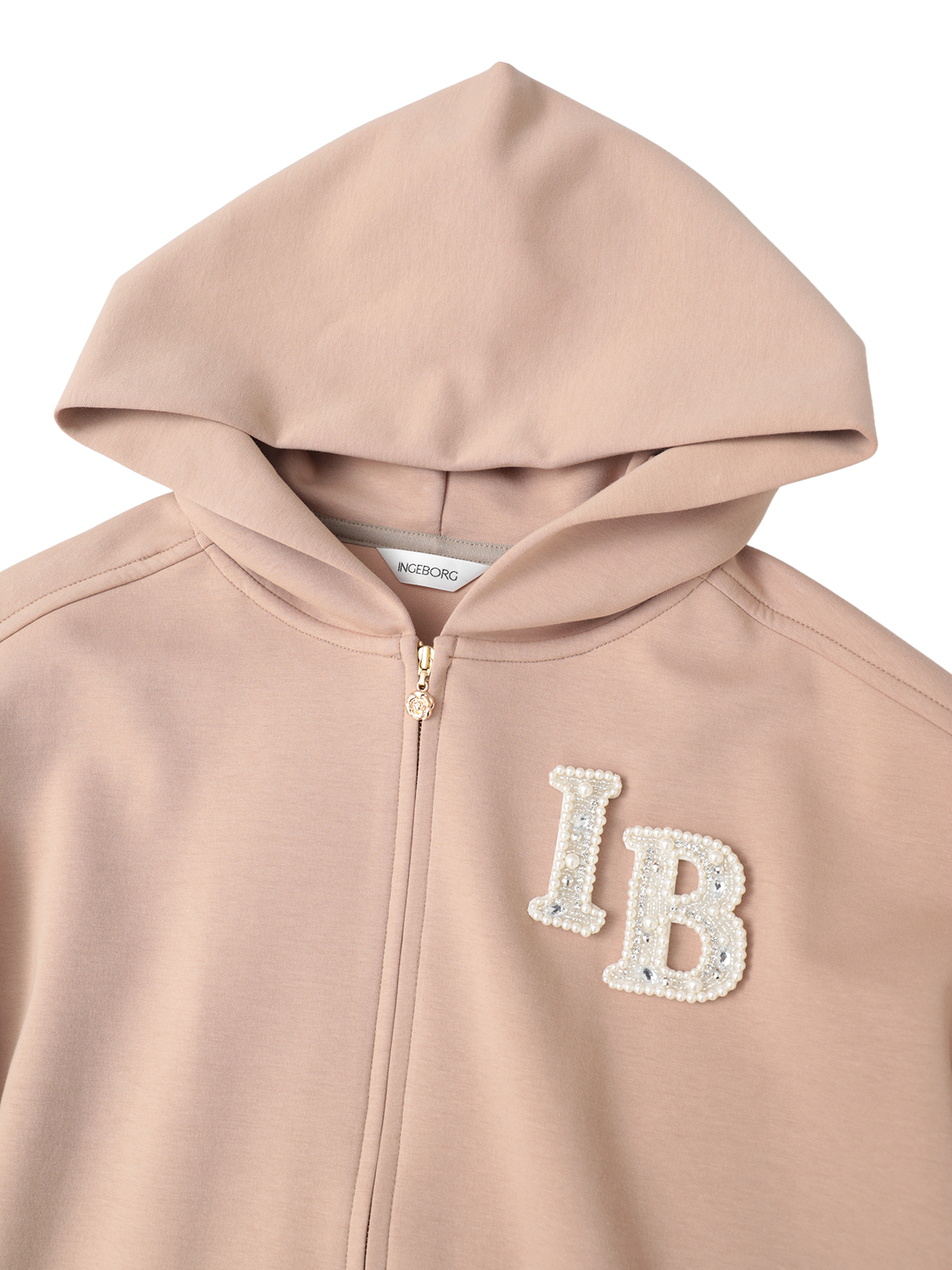 左胸には、パールやビーズでかたどられたブランドロゴワッペンをあしらい、さりげない華やかさをプラス。