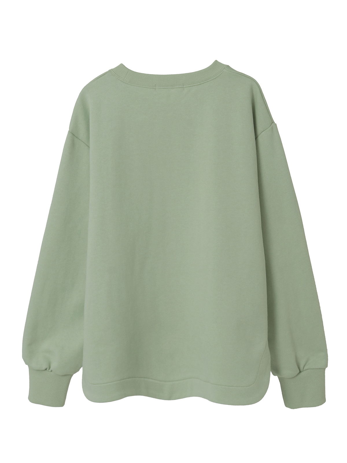 優しく首元を包むクルーネック、抜け感のあるドロップショルダーがリラックスしたムードを演出。