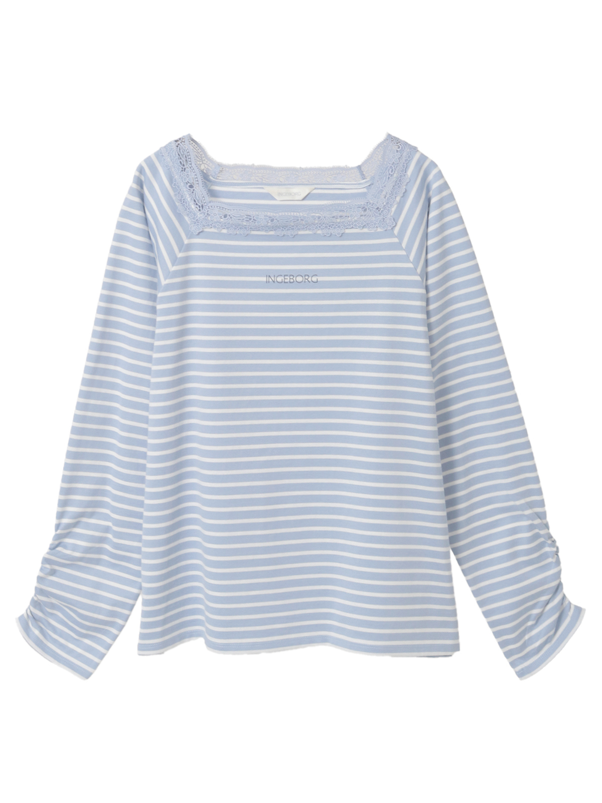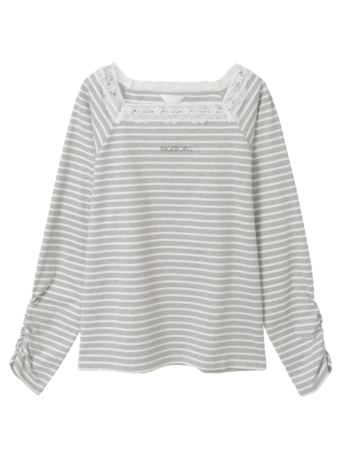 スクエアネックには繊細なレースをあしらい、顔周りに女性らしい柔らかさと上品な華やぎをプラス。カジュアルながらも品のある印象に仕上がった一着です。