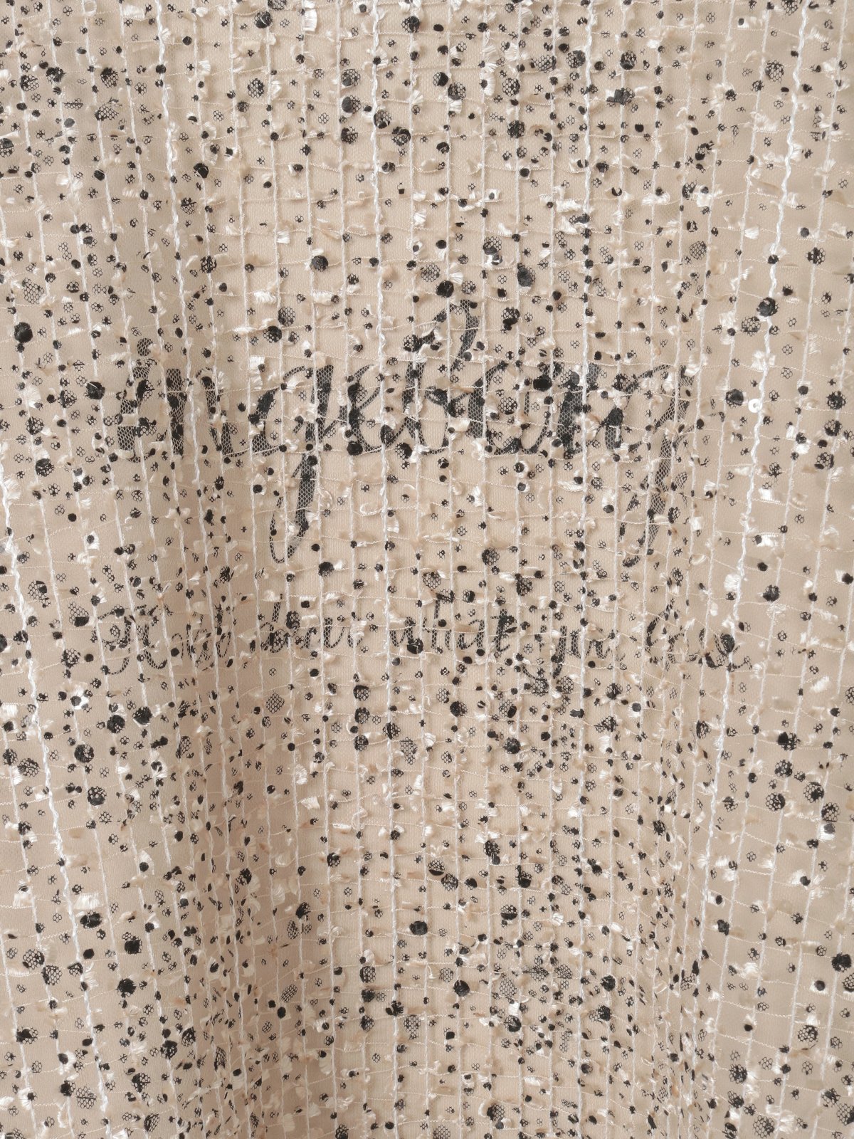 繊細なチュールに描かれたチェック柄の刺繍と、フロッキープリントのドットが重なり合い、立体感とリズム感を感じさせるレイヤード風カットソートップス。