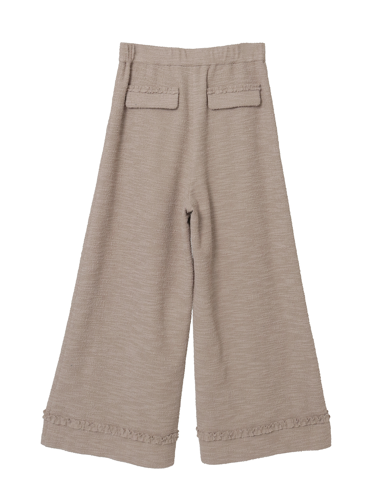 同素材には、ジャージーツイードコサージュ付きブラウス(A2261UPO055)、ジャージーツイードフリルベスト(A2261UPO056)、ジャージーツイードワイドパンツ(A2261UP 057)、がございます。