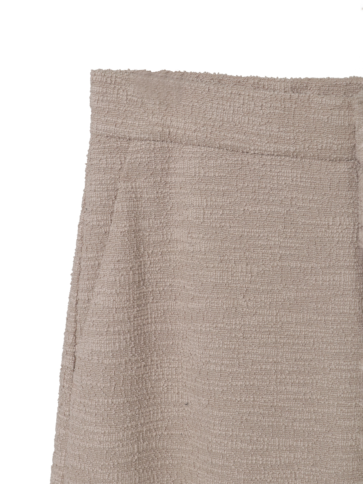 クラシカルなムードにさりげないぬけ感を添えるジャージーツイードで仕立てたストレートパンツ。