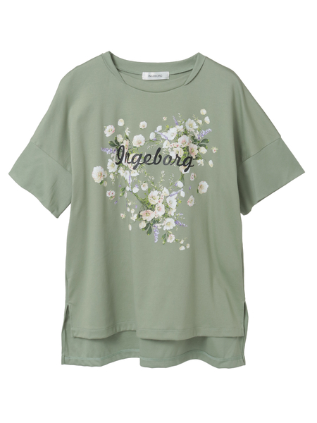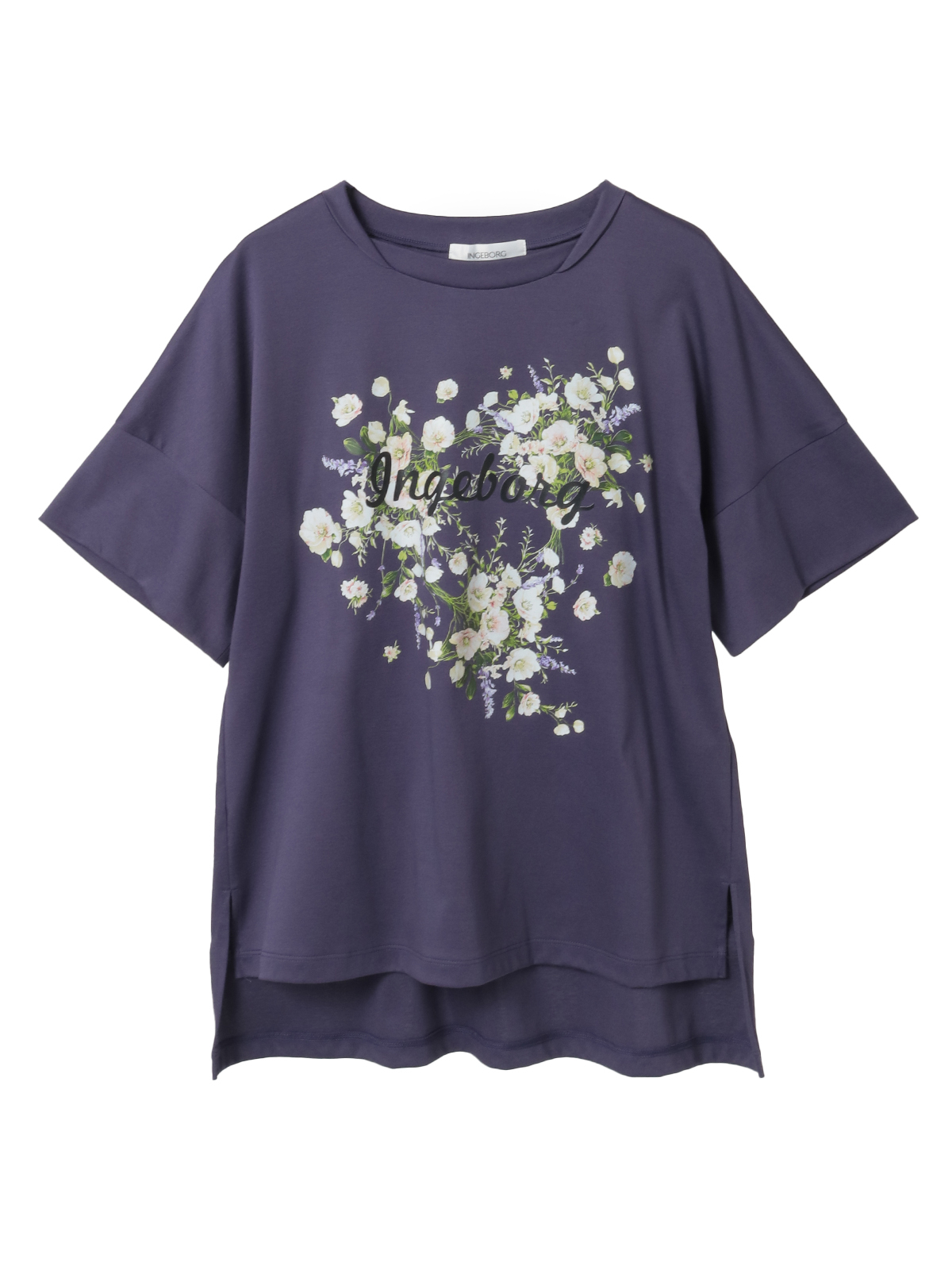 アネモネの花々をハート型に束ねたブーケが、胸元にそっと想いを咲かせるカットソー。
