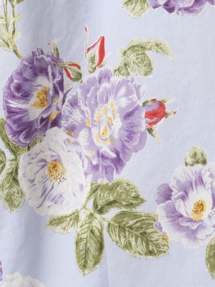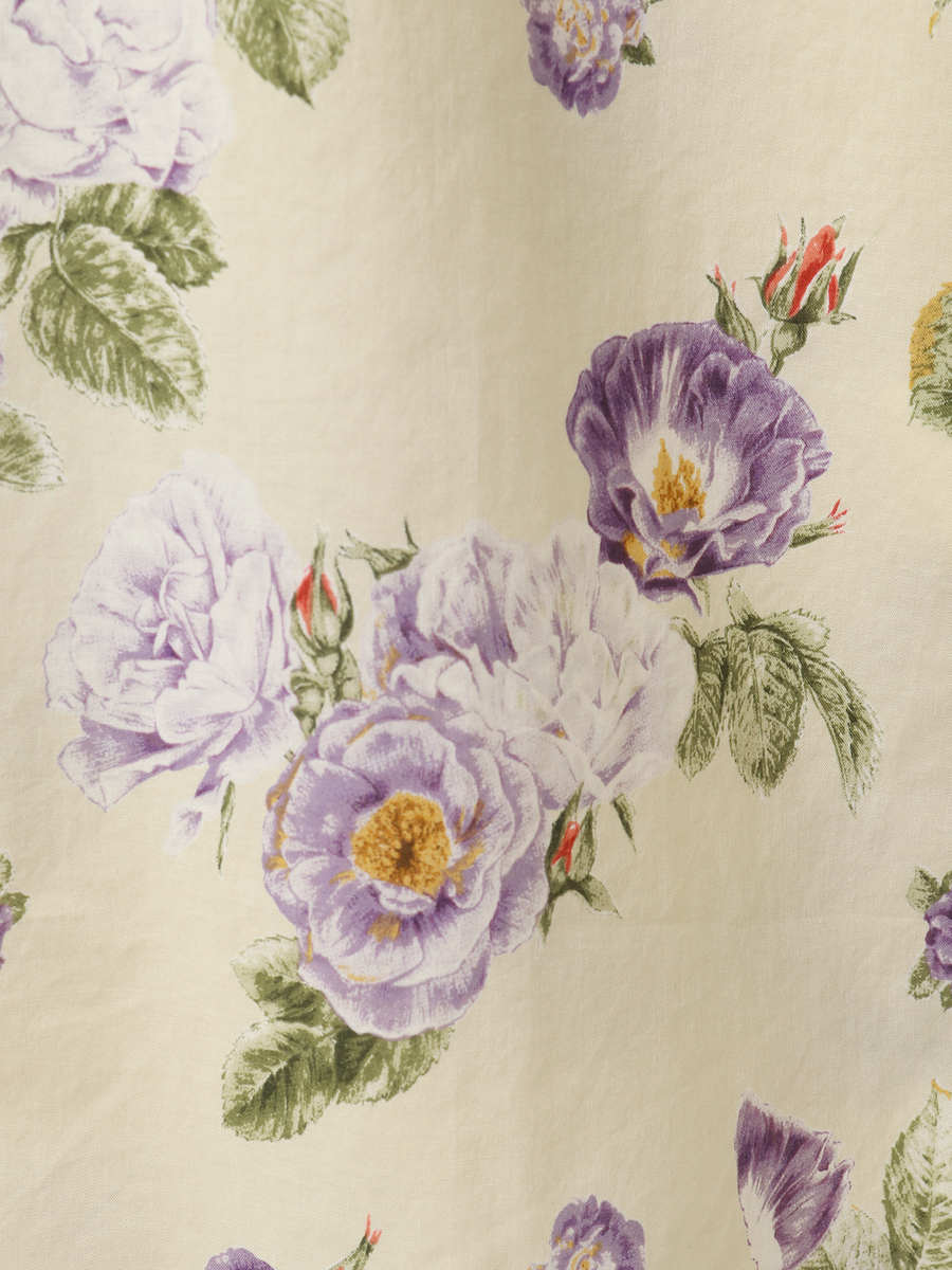 60ローンにプリントしたテキスタイルは、薄くて軽く汗ばむ時期でもさらりと着やすい素材感。ハンドプリントの手法を取っているのでハンドプリントならではの柄の美しさもお楽しみいただけます。