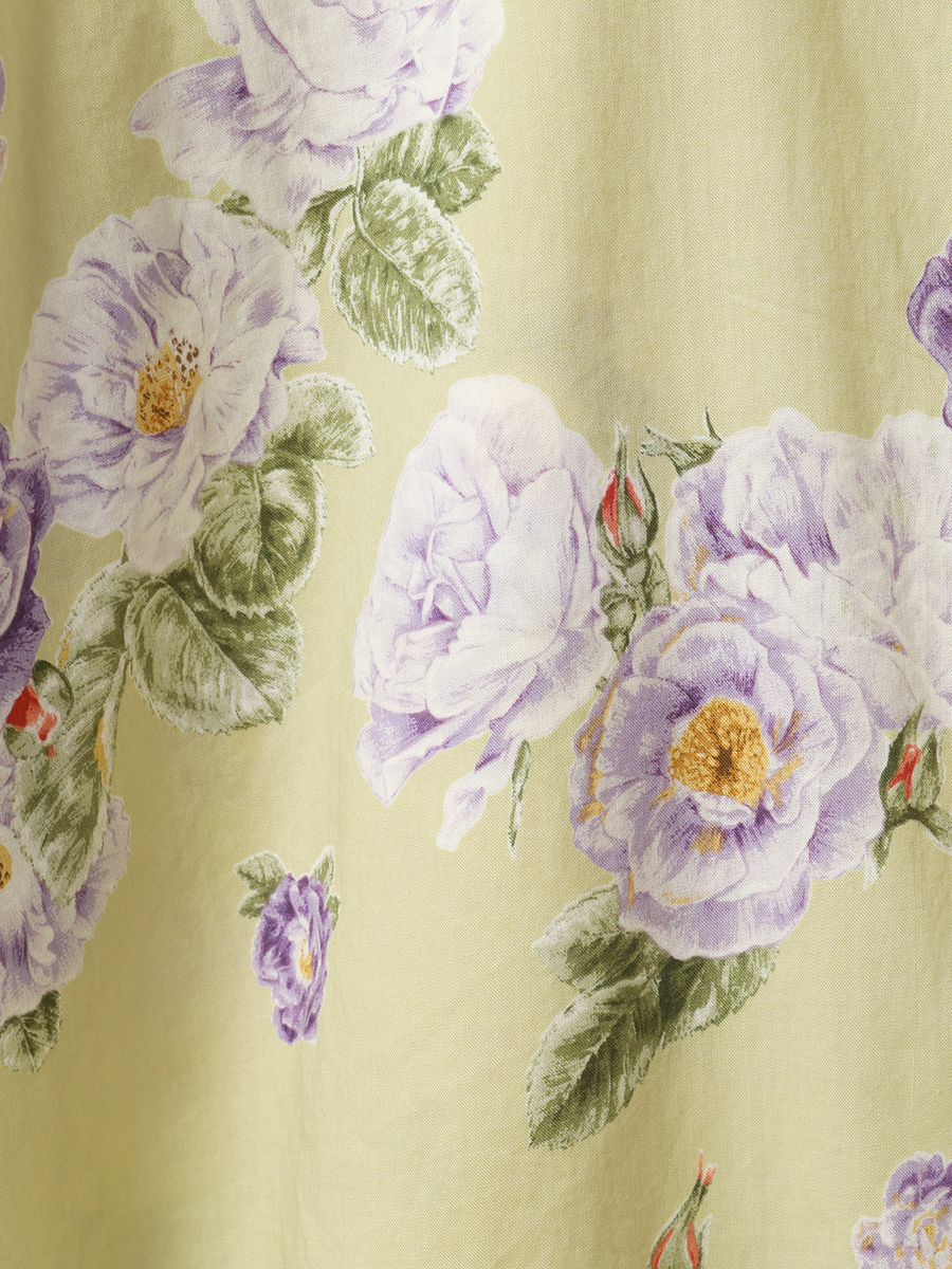 この商品に使用されている生地は、柄の繊細さ、色相の厚み等を表現するため、日本国内で一色ずつ手による染色加工(手捺染)を施しております。