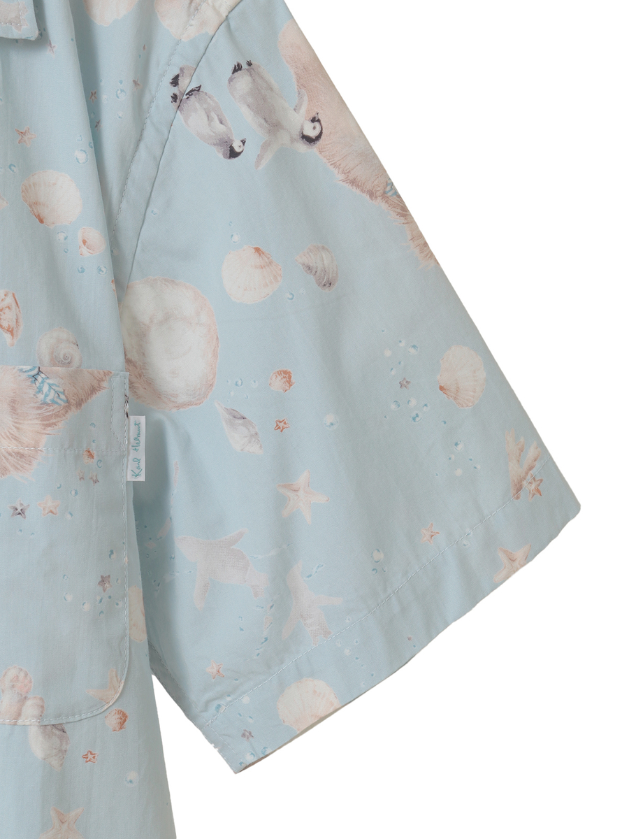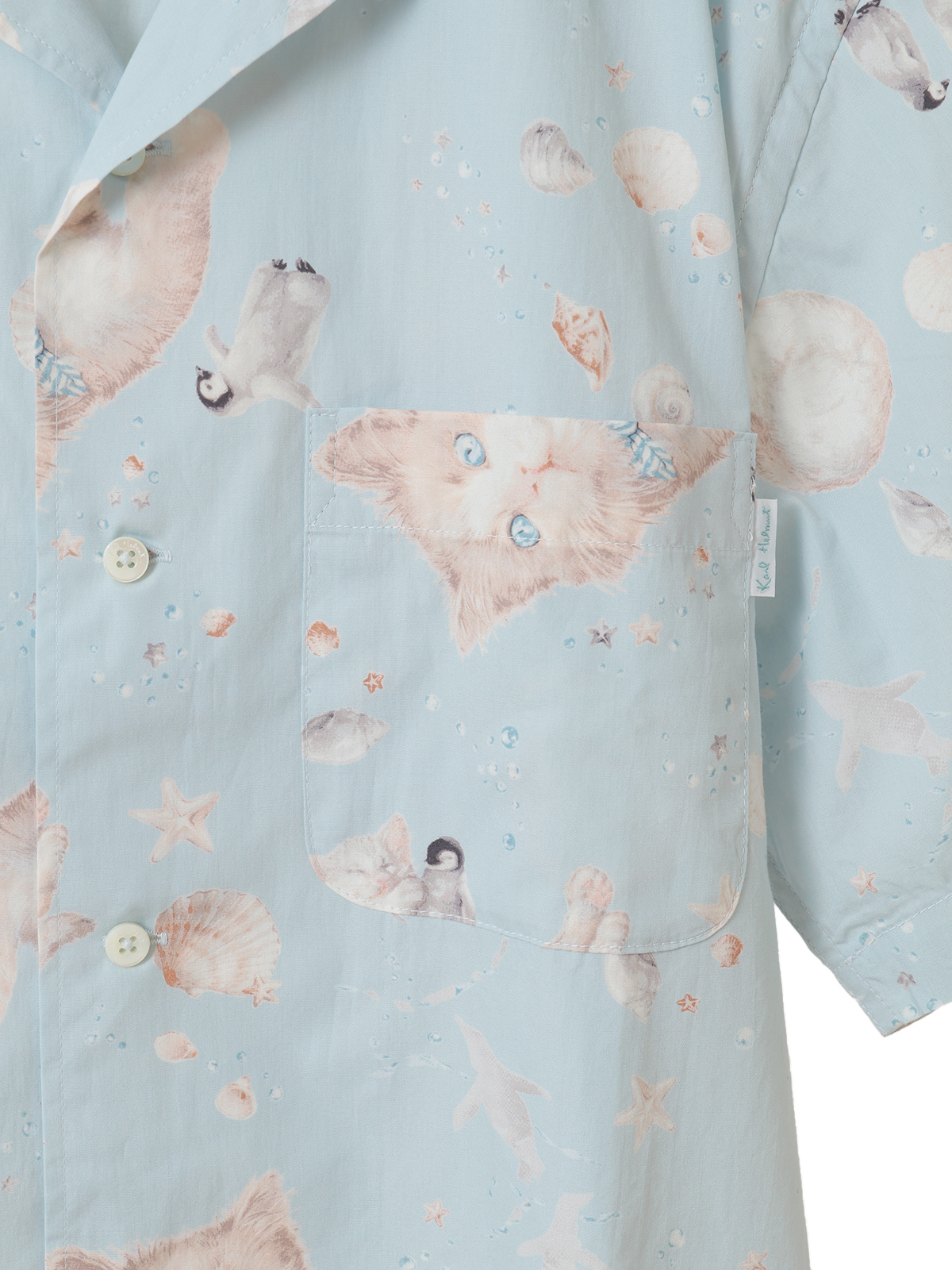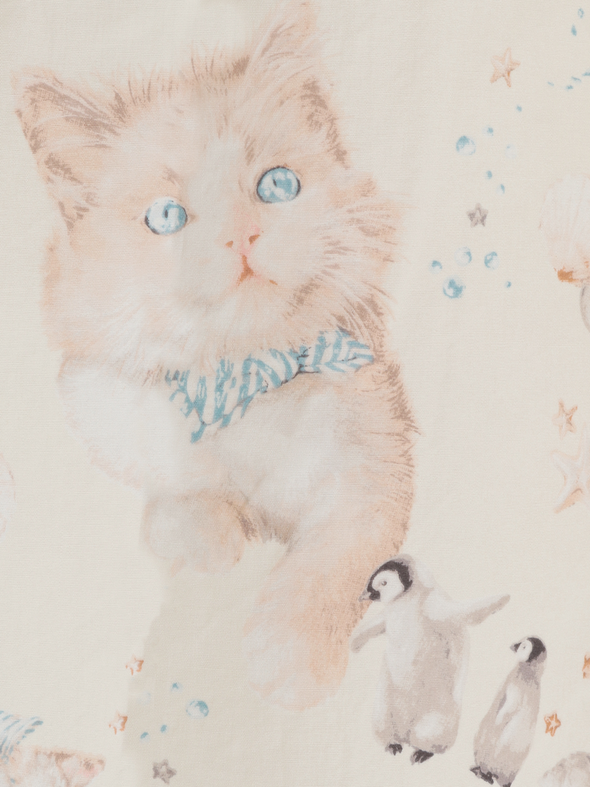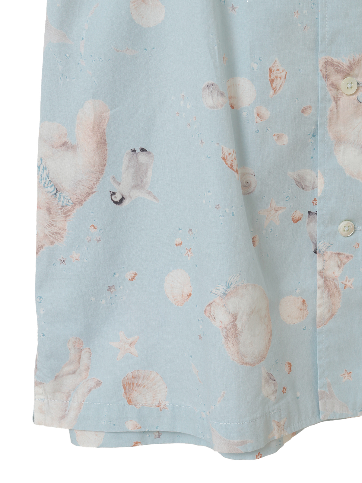 柔らかな猫たちと貝がらのすこし不思議なプリントに。