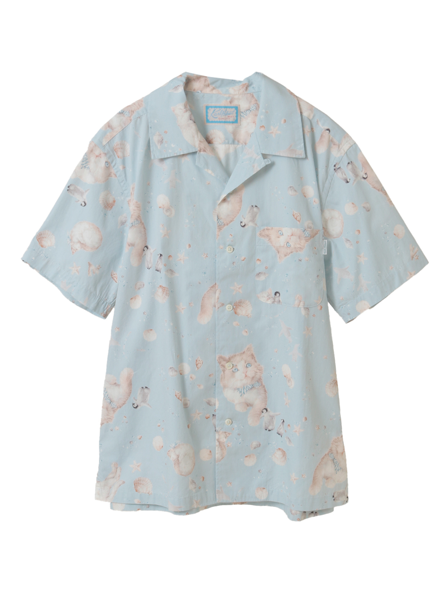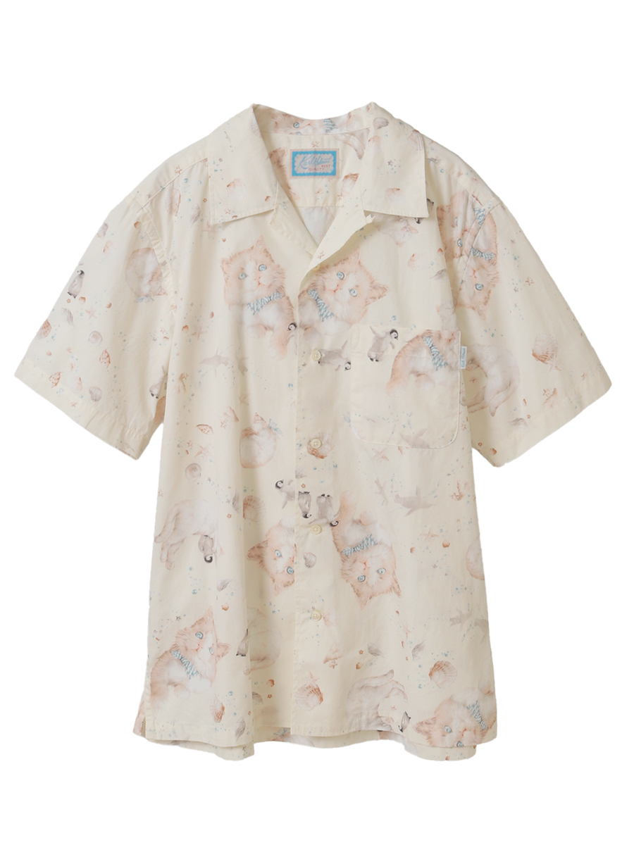 • さざ波とねこプリントシャツブラウス