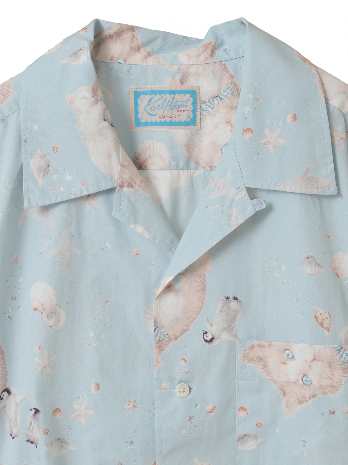 6. さざ波とねこプリントシャツブラウス