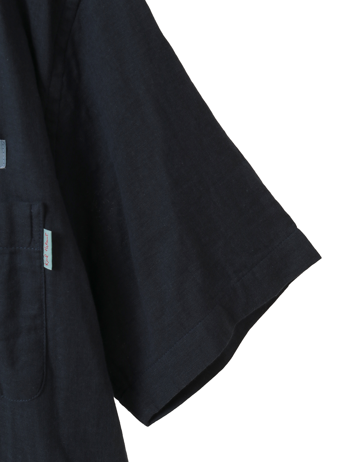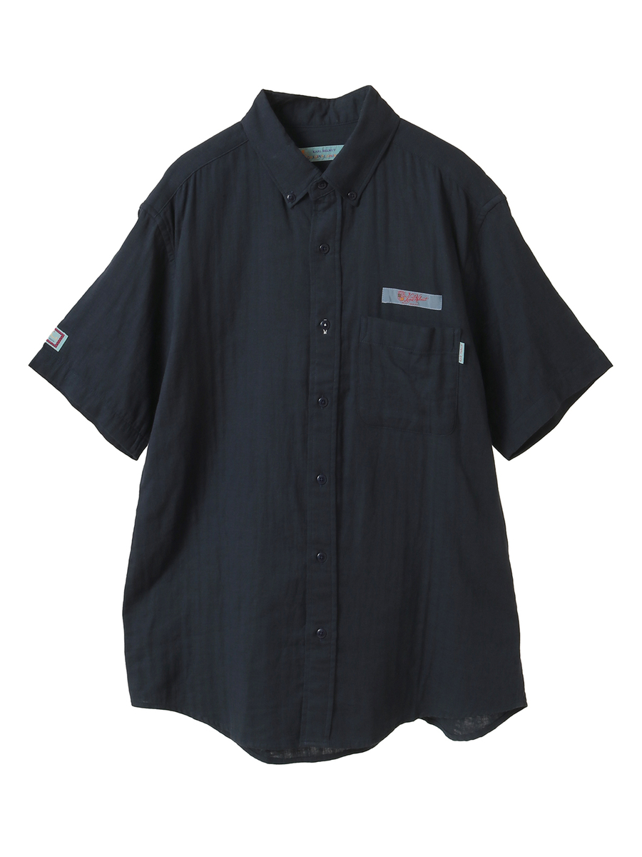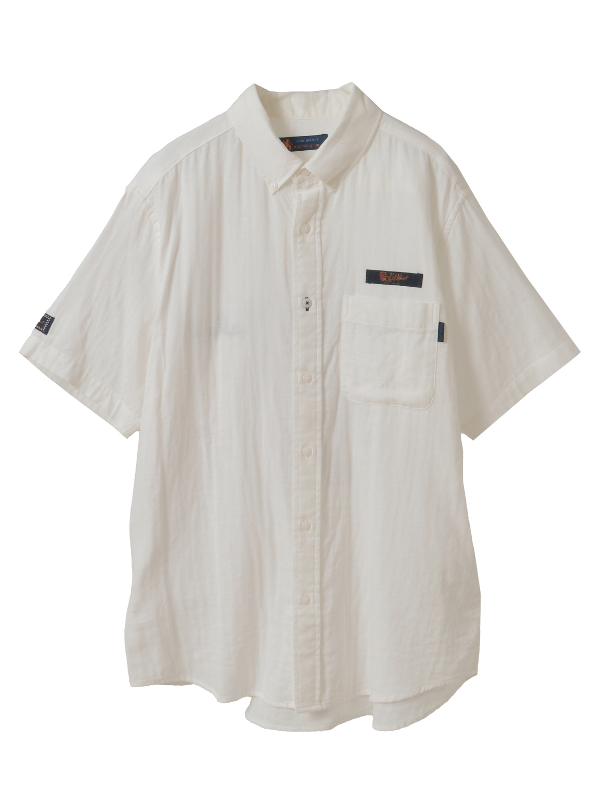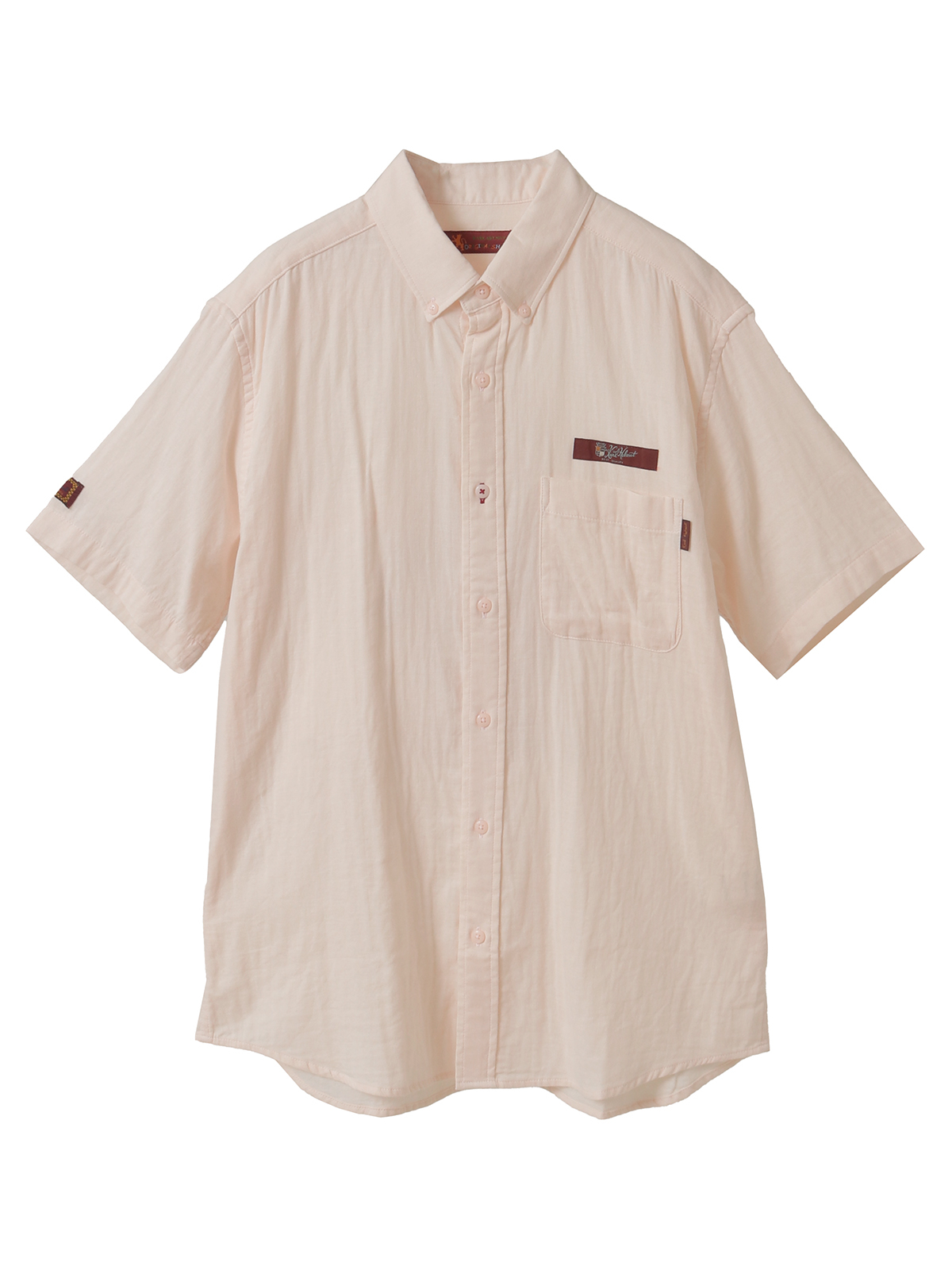 フロントは、左胸にポケットとロゴネームをあしらったのみのシンプル仕上げ。左袖にもロゴネームのワンポイント入り。