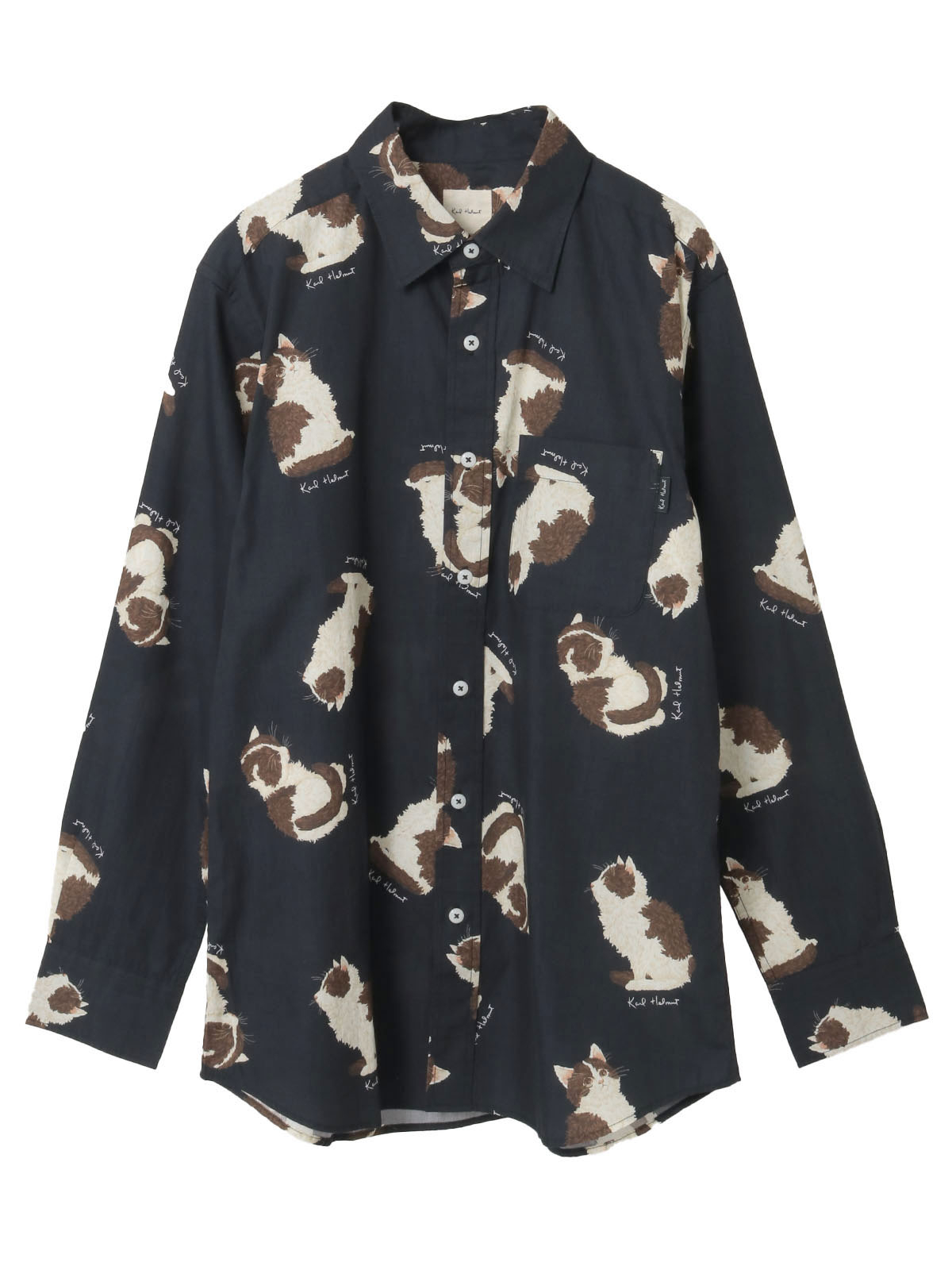 ふわふわの毛並みとあどけない表情がなんとも愛くるしい猫をモチーフにしたシャツブラウス。