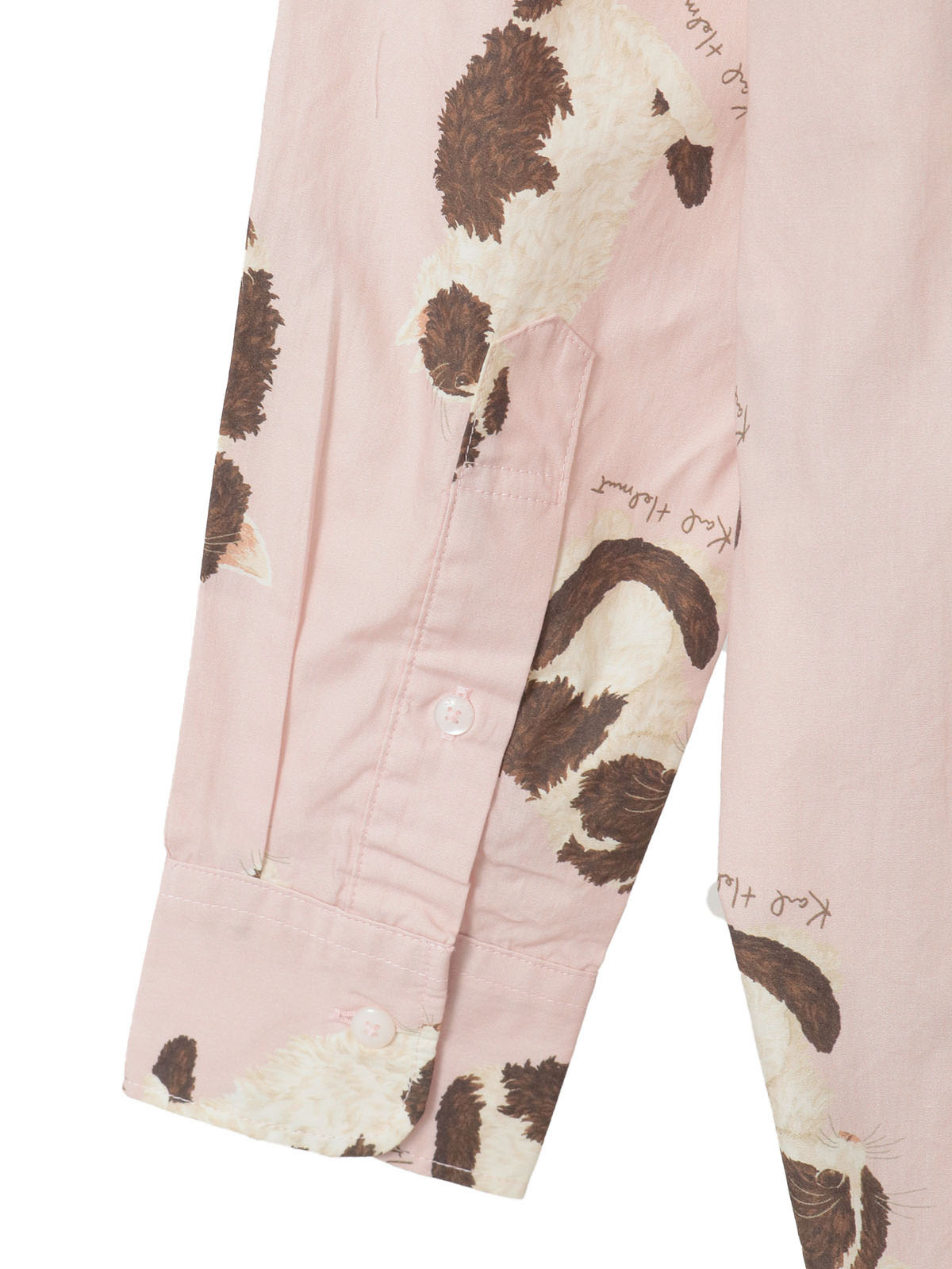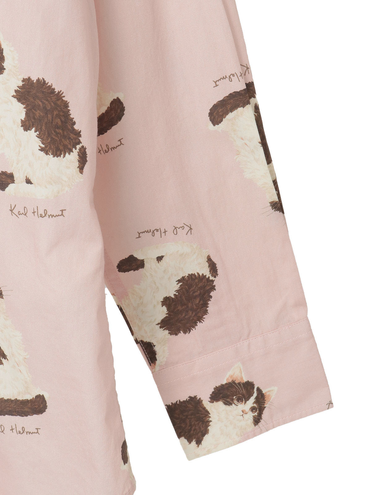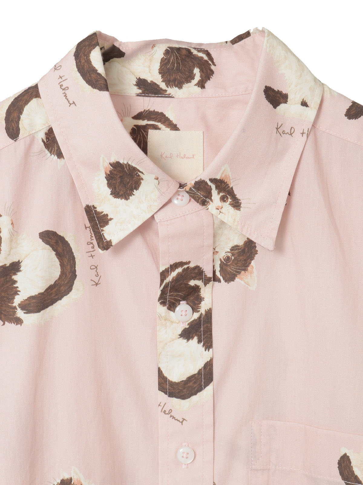 ふわふわの毛並みとあどけない表情がなんとも愛くるしい猫をモチーフにしたシャツブラウス。